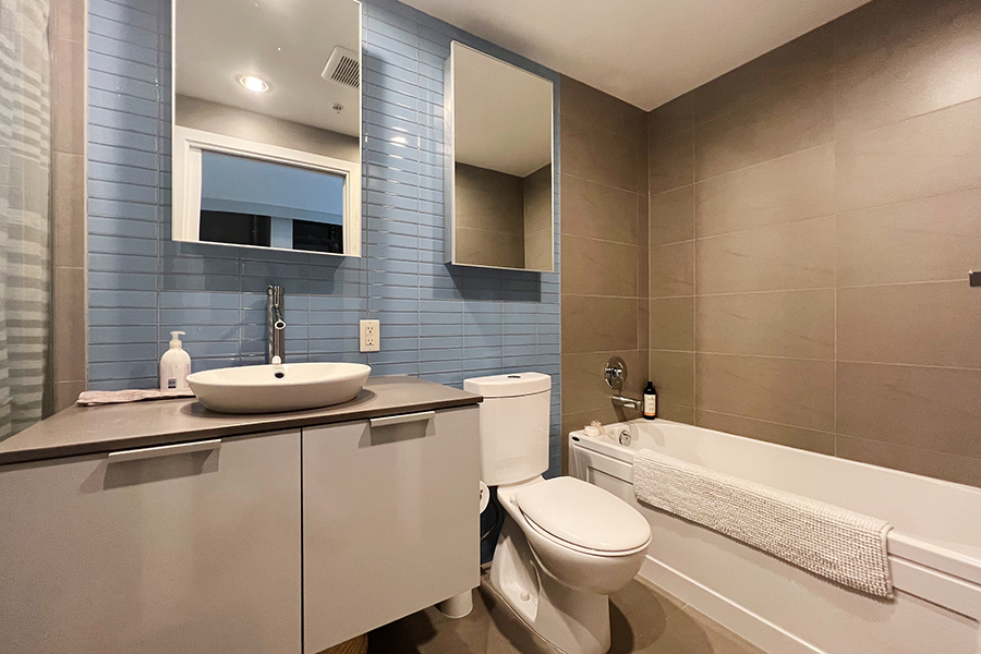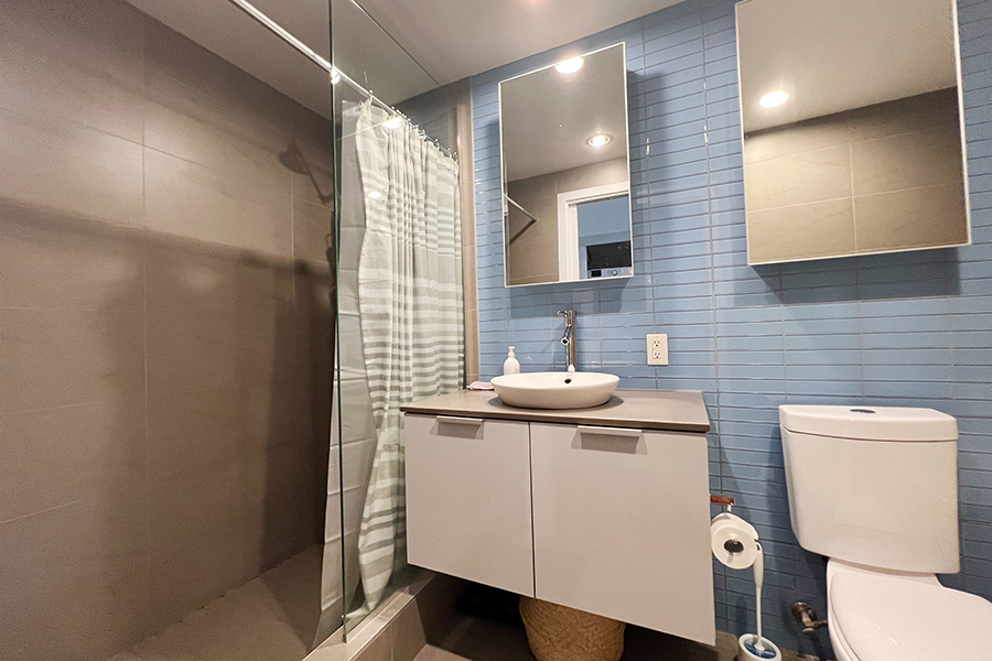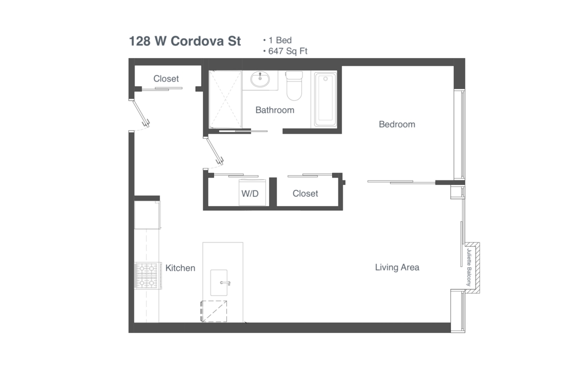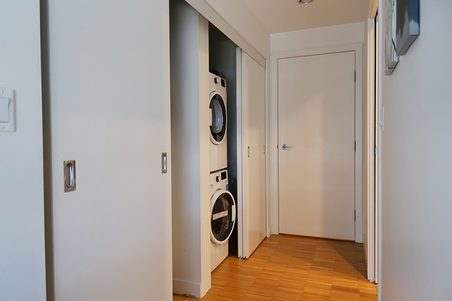 Located in a historic Gastown building, this unit features, over height exposed concrete ceilings, floor to ceiling windows, modern Kitchen with breakfast bar and quartz counter tops, full-size Stainless-steel appliances: fridge, stove & oven, dishwasher, and microwave, bathroom with separate bath tub and shower, primary Bedroom with ensuite bathroom and California closet, juliet balcony, and in-suite washer and dryer.
