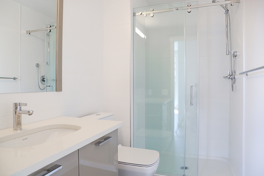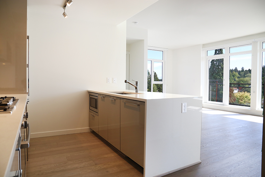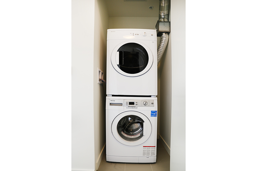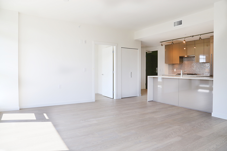 Features Include 2 sunny bedrooms on opposite ends of the home, each with expansive closet space, 2 full bathrooms, Enclosed den, perfect as an office, Laminate wood flooring throughout the home, Sizable dining area, Sunny, open living room with floor to ceiling windows, Open plan kitchen with ample storage space, Full-size appliances – Fridge, gas stove, oven, dishwasher, microwave, In-suite washer and dryer, TWO balconies with sweeping park views