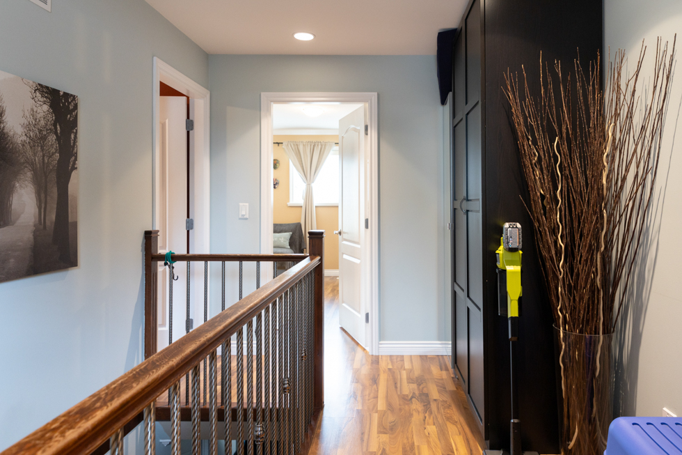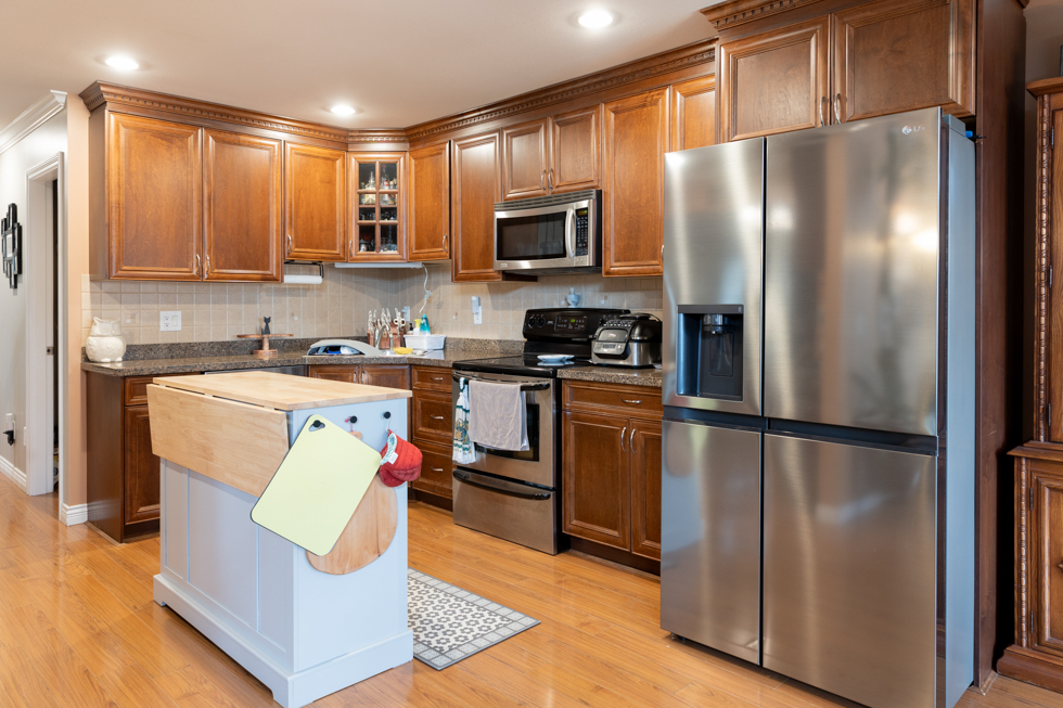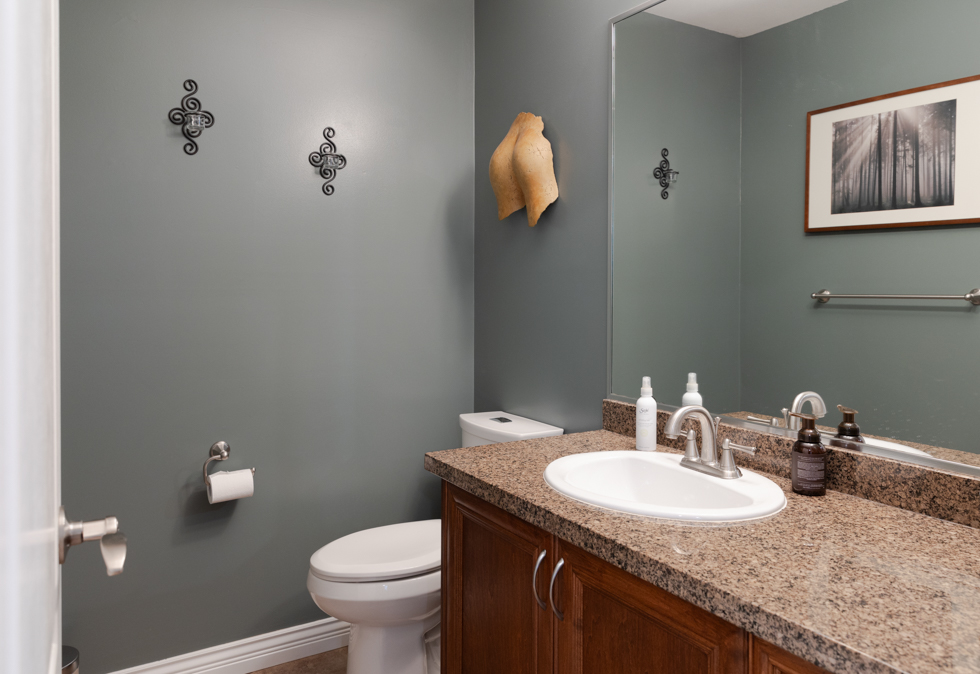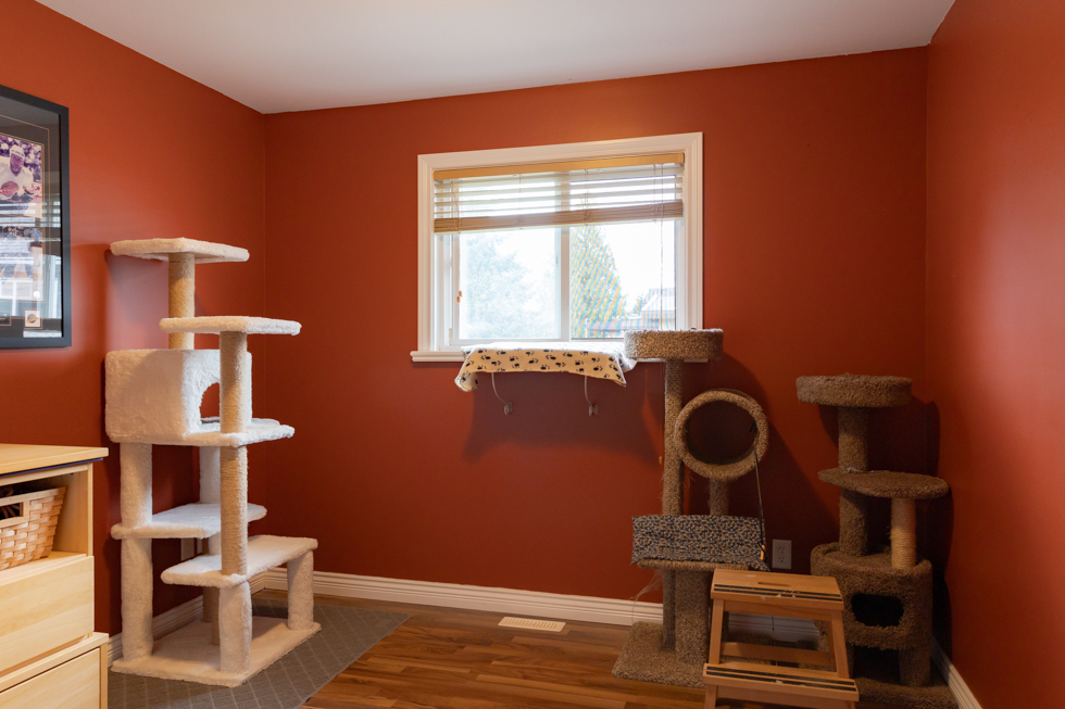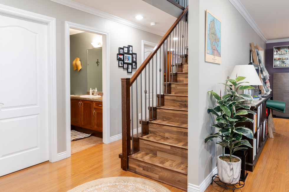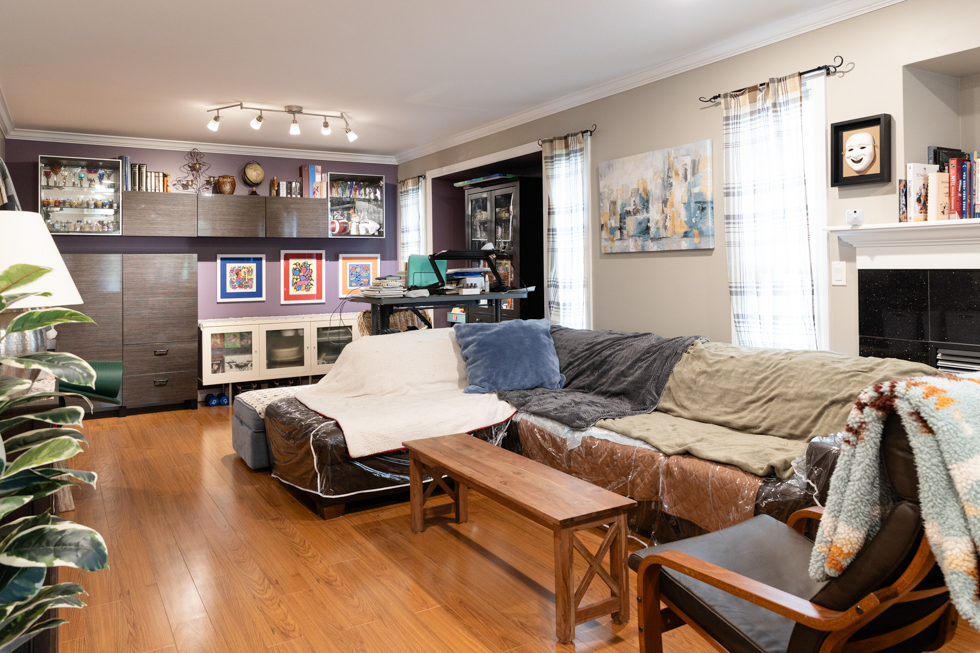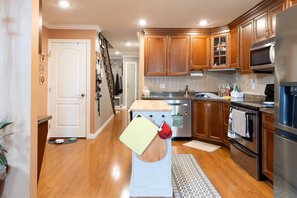 Features in this inviting duplex include stainless steel appliances: fridge, stove, dishwasher, and microwave, central forced air-conditioning & heating, Built-in vacuum system, 200 sq ft of outdoor covered deck facing the backyard, separate formal living and family rooms, gas fireplace in family room, 3 spacious bedrooms, primary bedroom with ensuite bathroom with dual sinks and shower, spacious private backyard, and dedicated laundry room with washer and dryer.