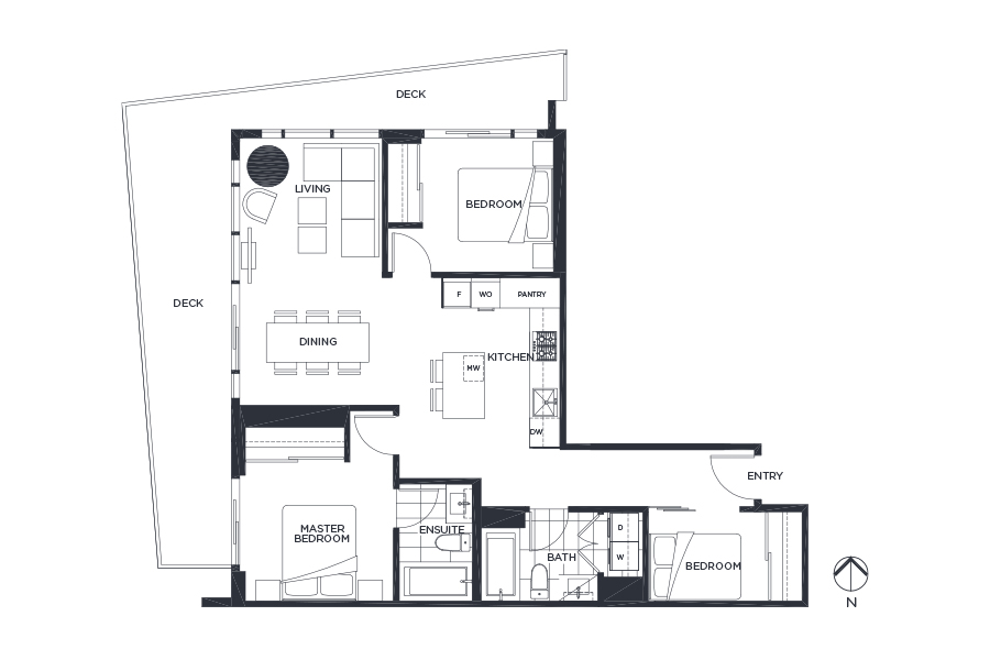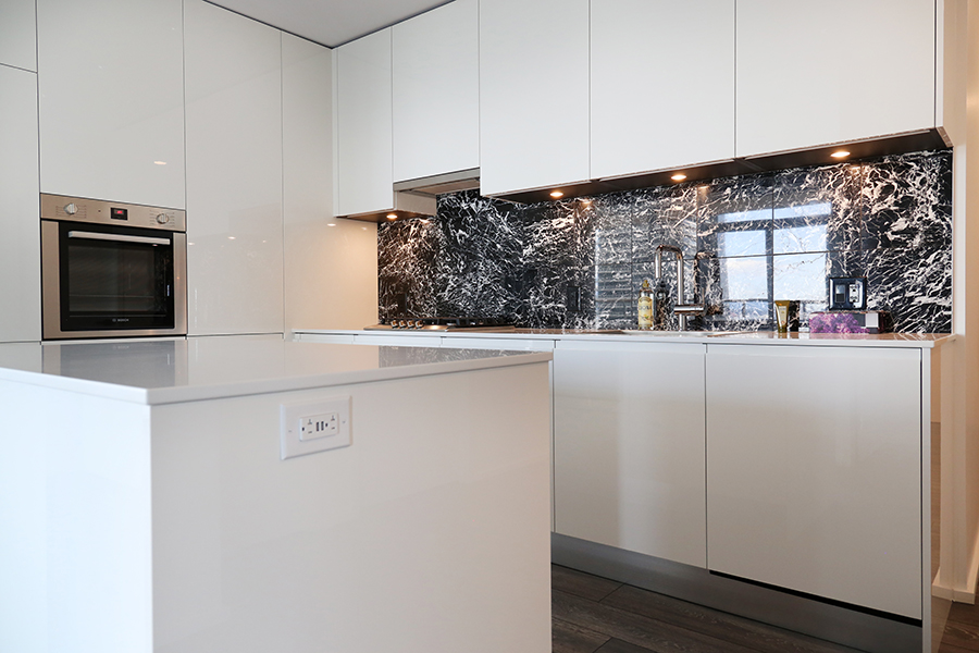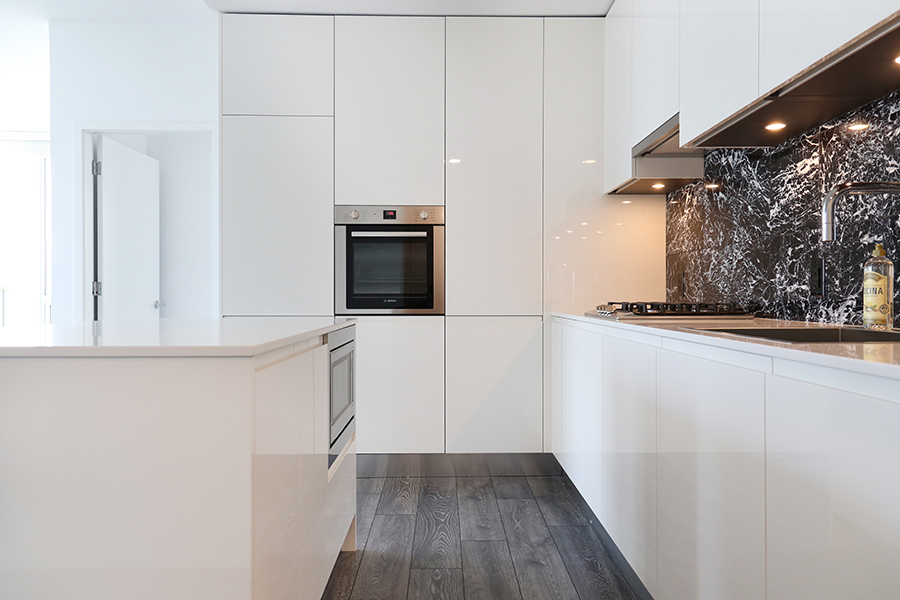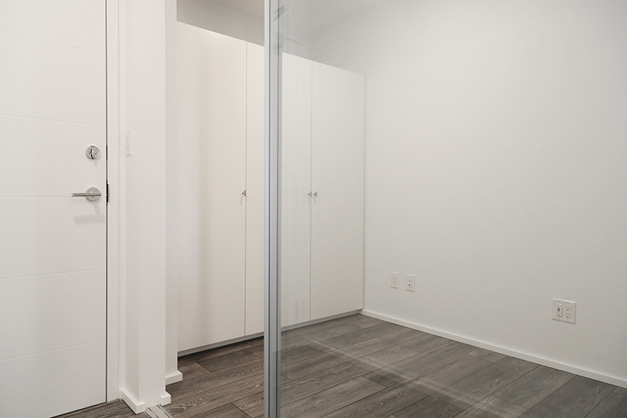 Features in this corner suite with open plan living include, floor to ceiling windows to allow plenty of natural light, premium stainless steel and integrated appliances: Fridge, Dishwasher, Gas Stove, Wall Oven, and Microwave, large kitchen island, laminate wood flooring throughout, primary ensuite bathroom, den with closest, perfect for an office or large enough to be converted into a 3rd bedroom, 294 SF wrap around private patio and in-suite side-by-side washer and dryer. Amenities Include: 25,000 sq ft + of amenities, 24 hr Concierge , 6 elevators Guest suites, Fitness centre, Social lounge with kitchen , Outdoor patio with BBQ, Play Area, Games room, and Music room.