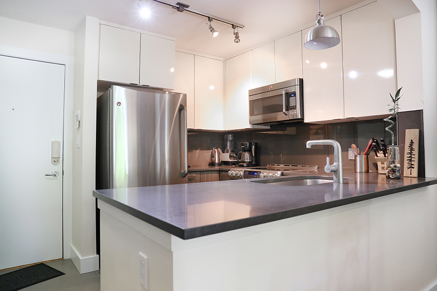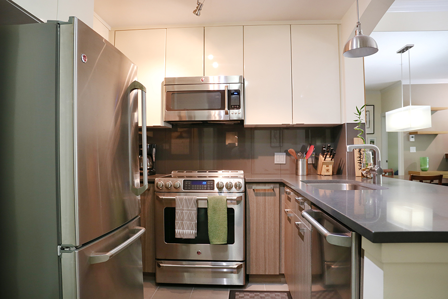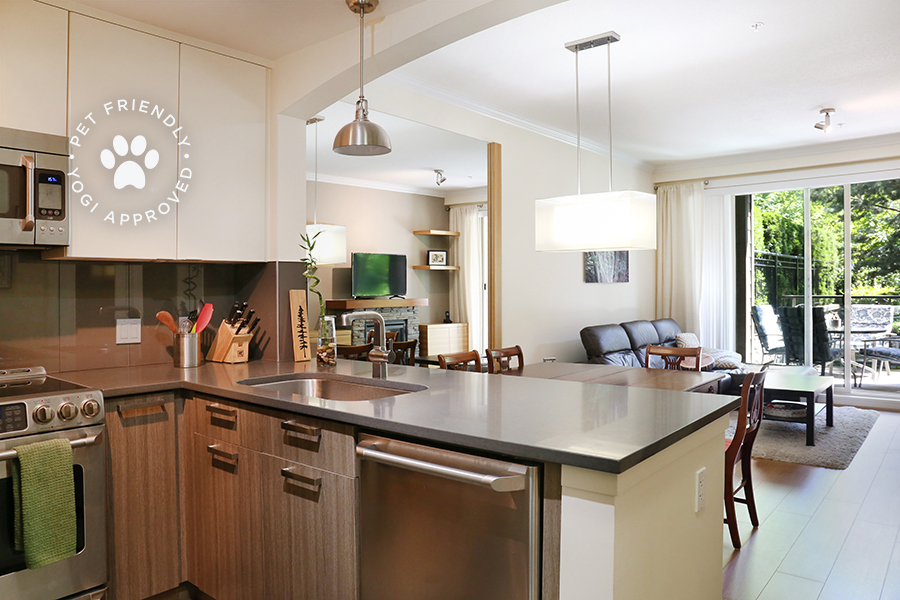 Features in this unit include high-end finishes, full-size premium stainless steel appliances: Stove, Oven, Steam Oven, Fridge, Dishwasher, and microwave, granite countertops, 9’ ceilings, laminate wood flooring, spacious covered patio, in-suite washer & dryer, and local alarm system. Amenities include on-site manager, game room with billiards, library nook with WiFi, exercise room, yoga room, lounge, outdoor patio with BBQ.
