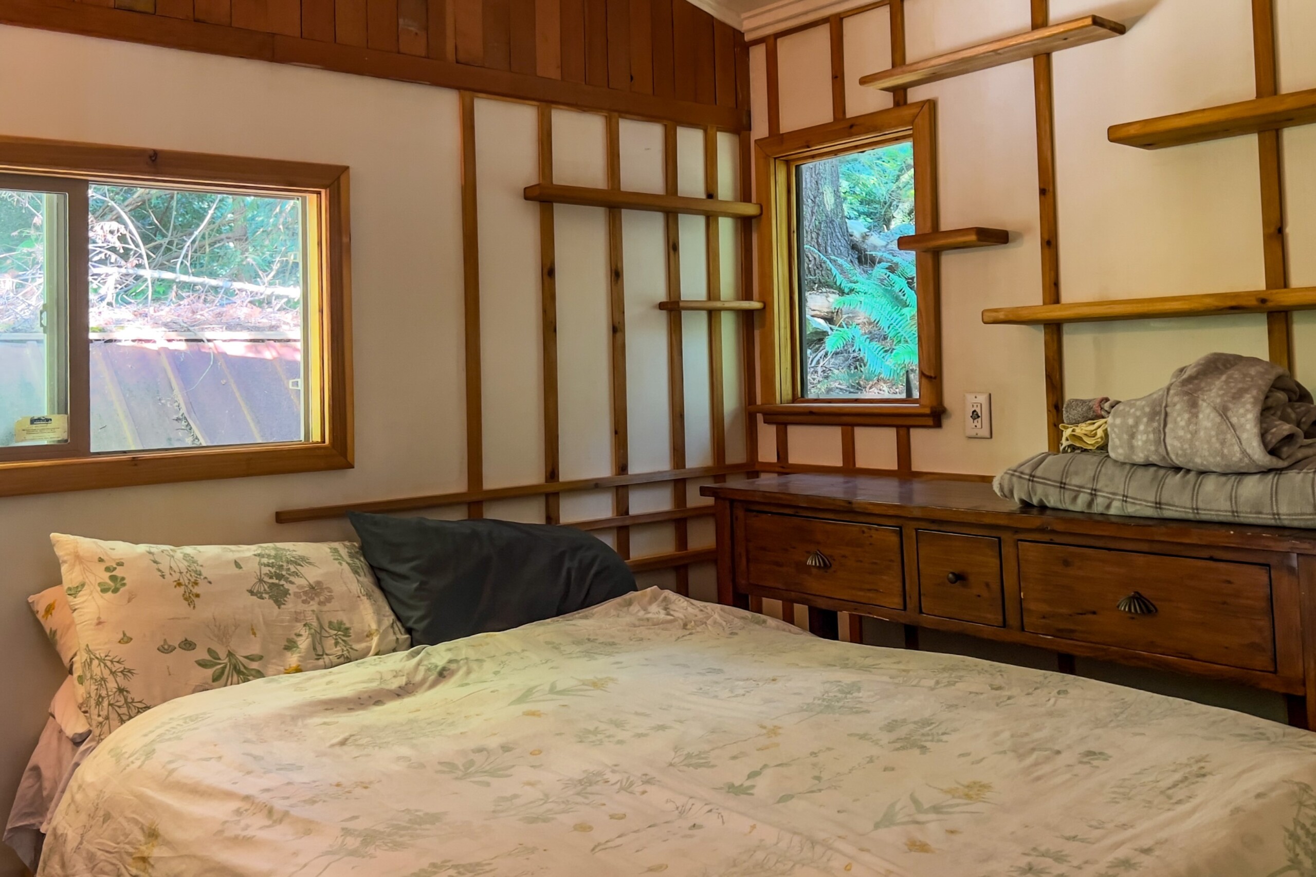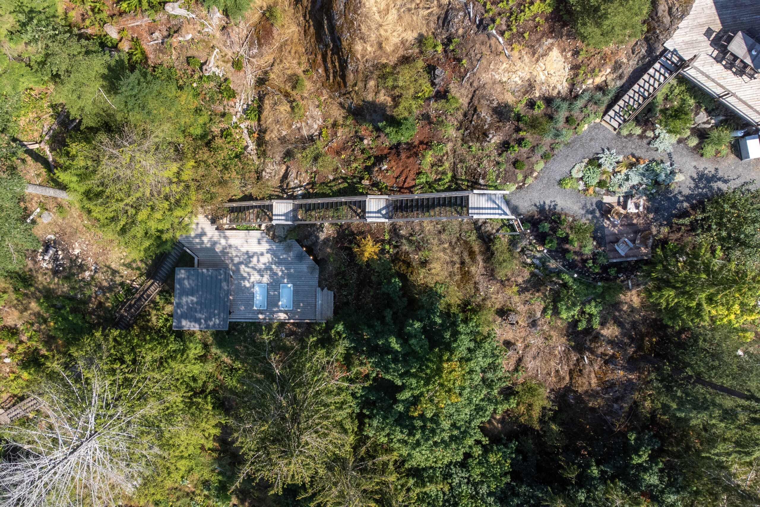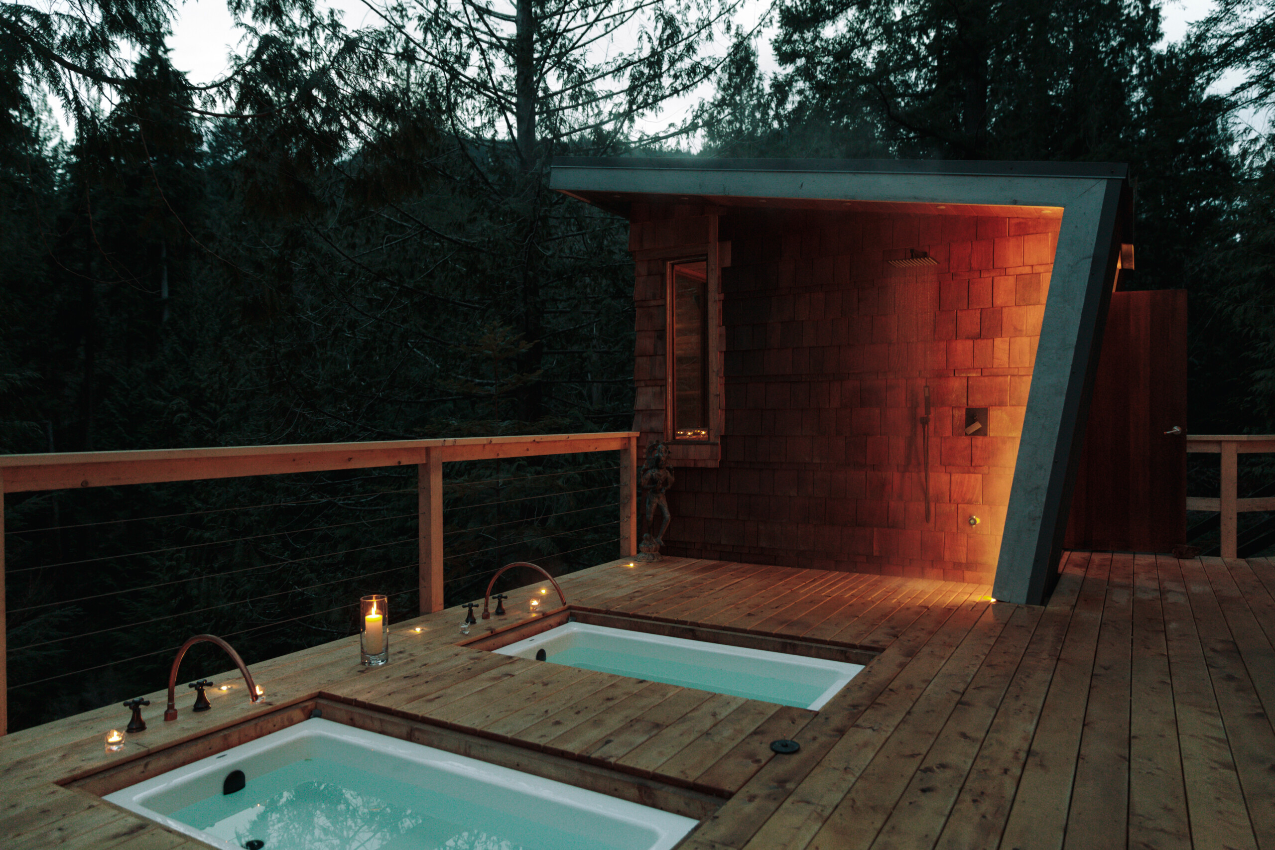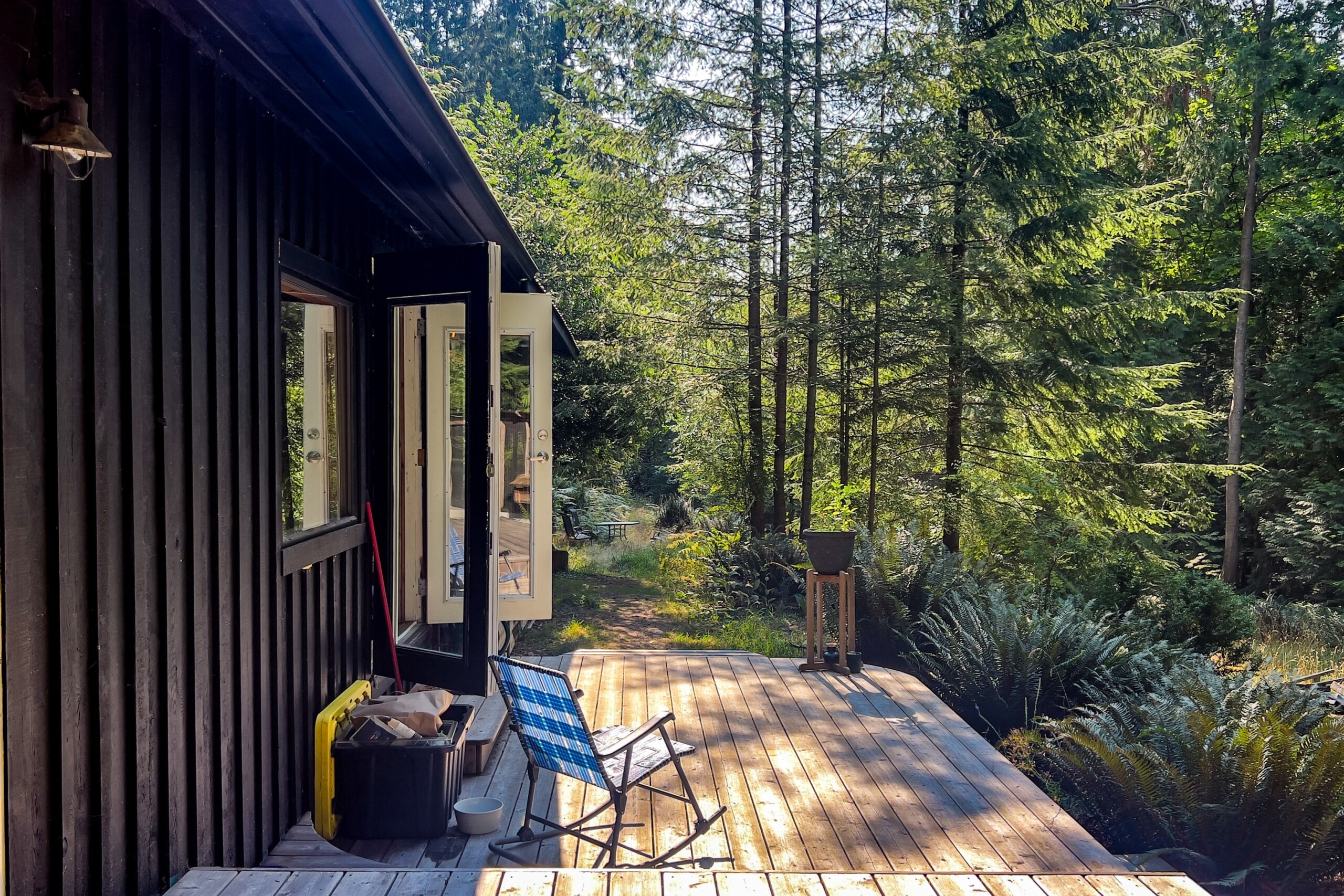 Walk down some steps to arrive at the forest spa with two outdoor tubs and a Scandinavian style sauna. Descend another set of steps to arrive at the 791 sqft 1-bedroom cabin with full kitchen, fireplace, bathroom, outdoor patio & veggie garden ready to pick for meal time. Continue the journey via your private trail which leads directly to Killarney Loop.