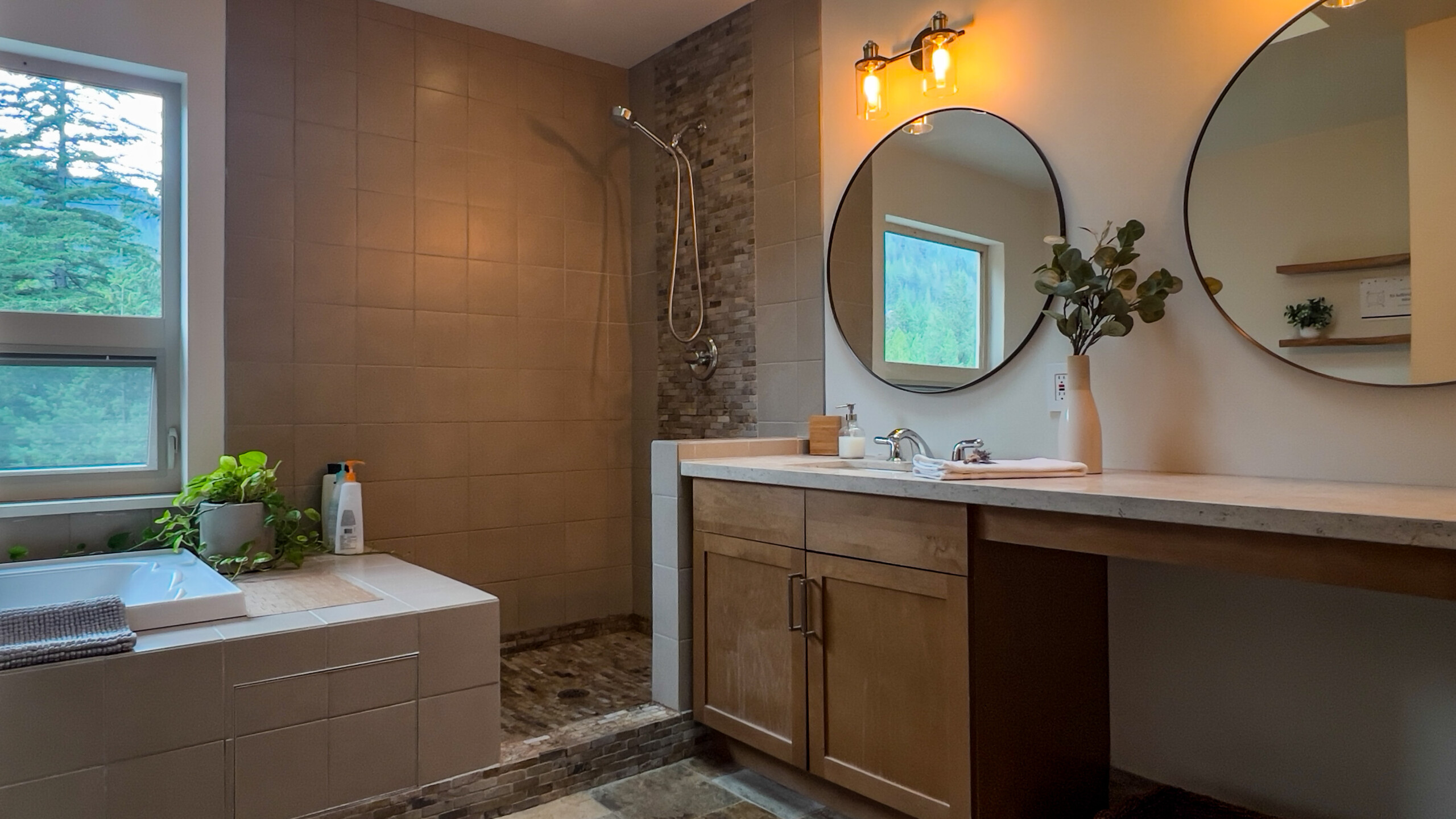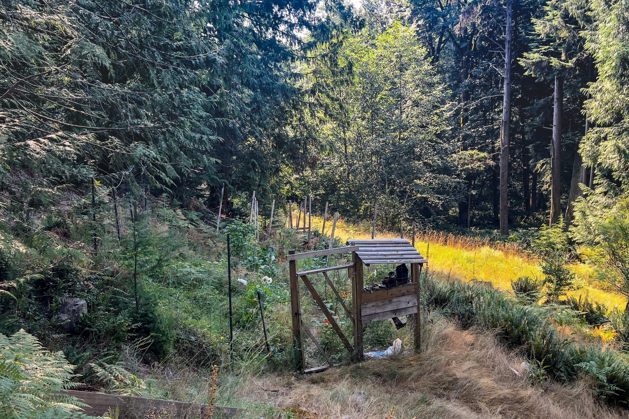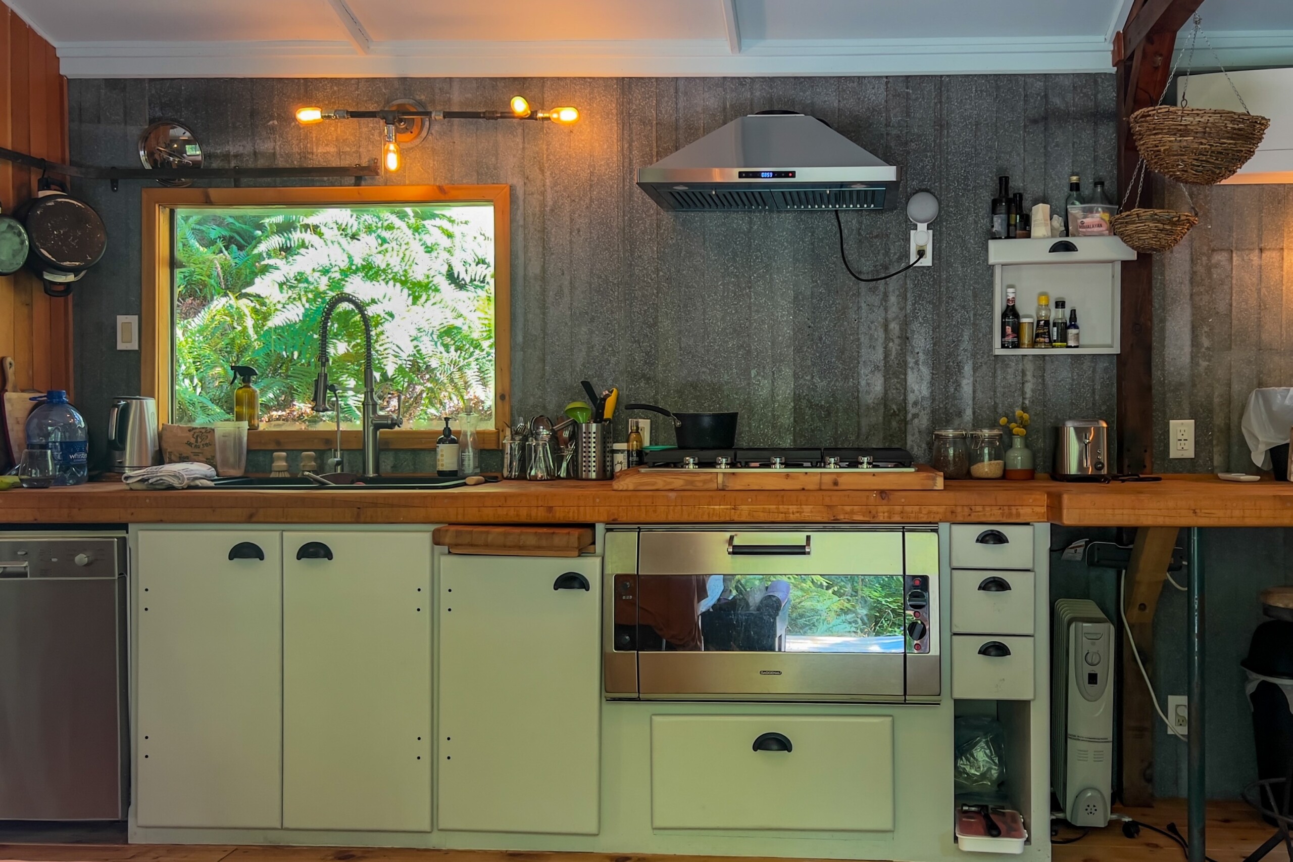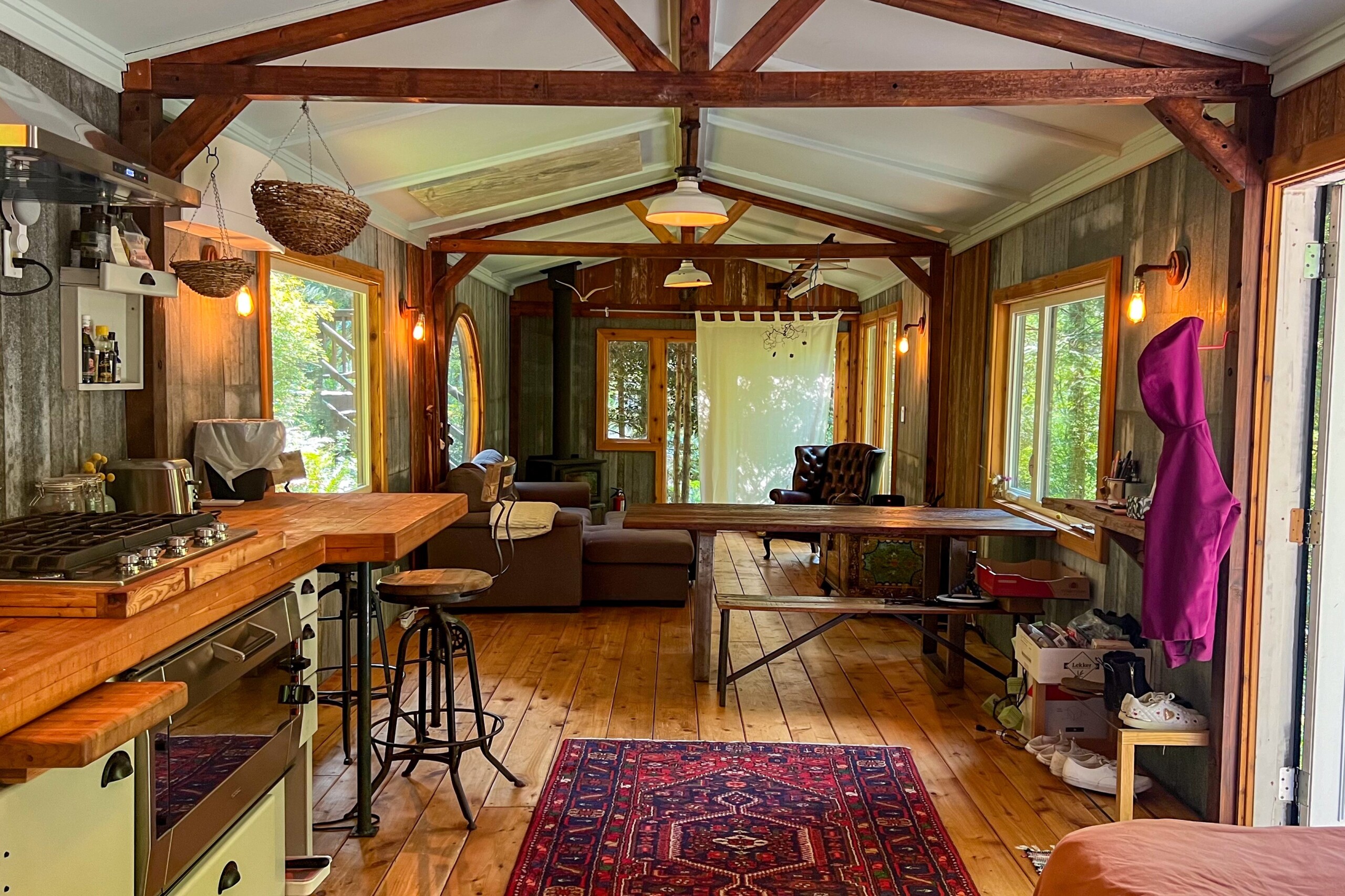 Walk down some steps to arrive at the forest spa with two outdoor tubs and a Scandinavian style sauna. Descend another set of steps to arrive at the 791 sqft 1-bedroom cabin with full kitchen, fireplace, bathroom, outdoor patio & veggie garden ready to pick for meal time. Continue the journey via your private trail which leads directly to Killarney Loop.