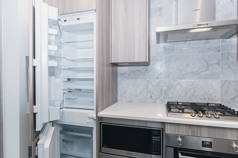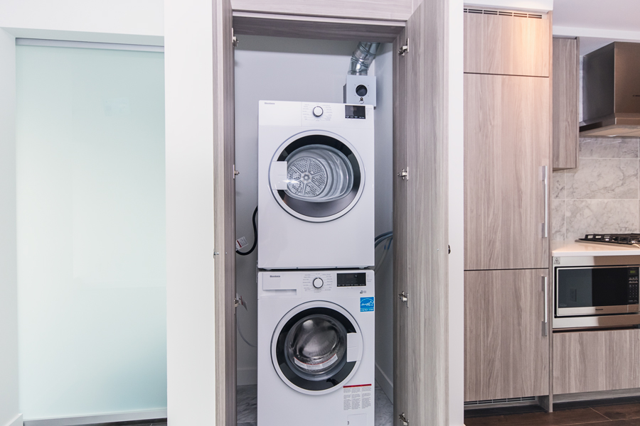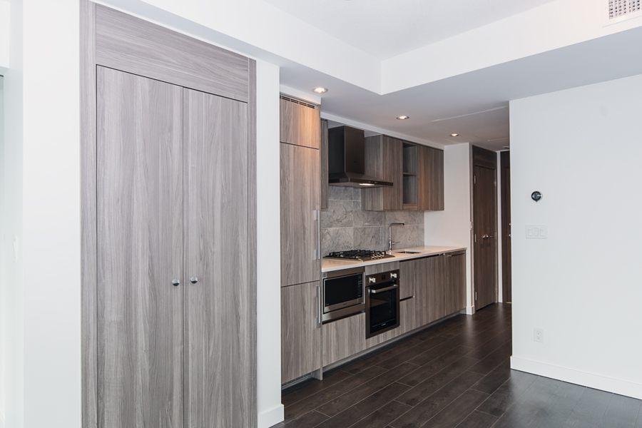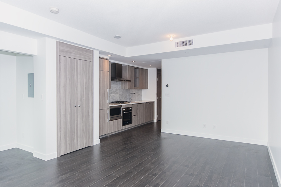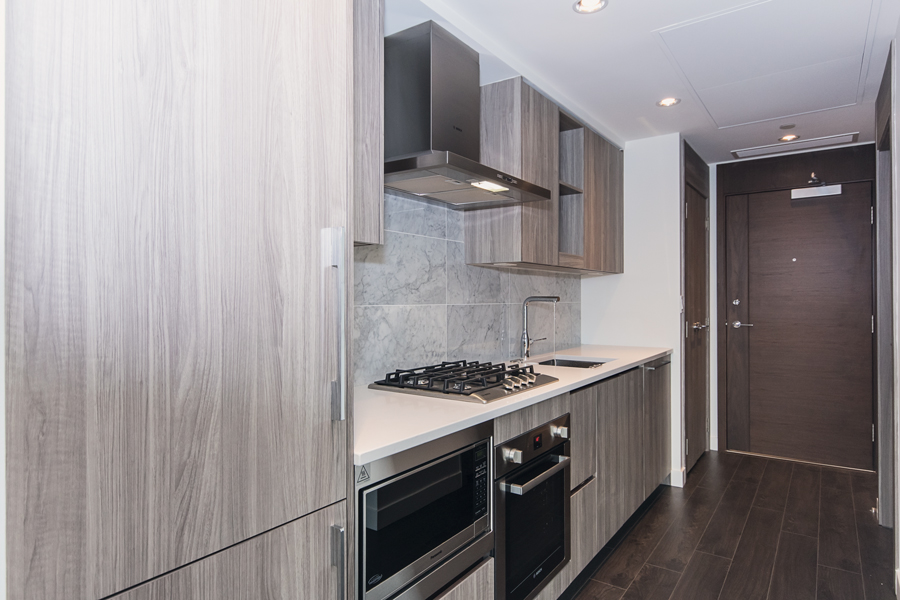 Features in this brand new condo unit include dark roller shades, in-unit central heating & air conditioner, 100 sqft of covered balcony, modern kitchen with island and quartz counter tops, full-size Stainless-steel appliances, smart home thermostat, in-suite washer and dryer, and unobstructed north facing views of city & mountains.