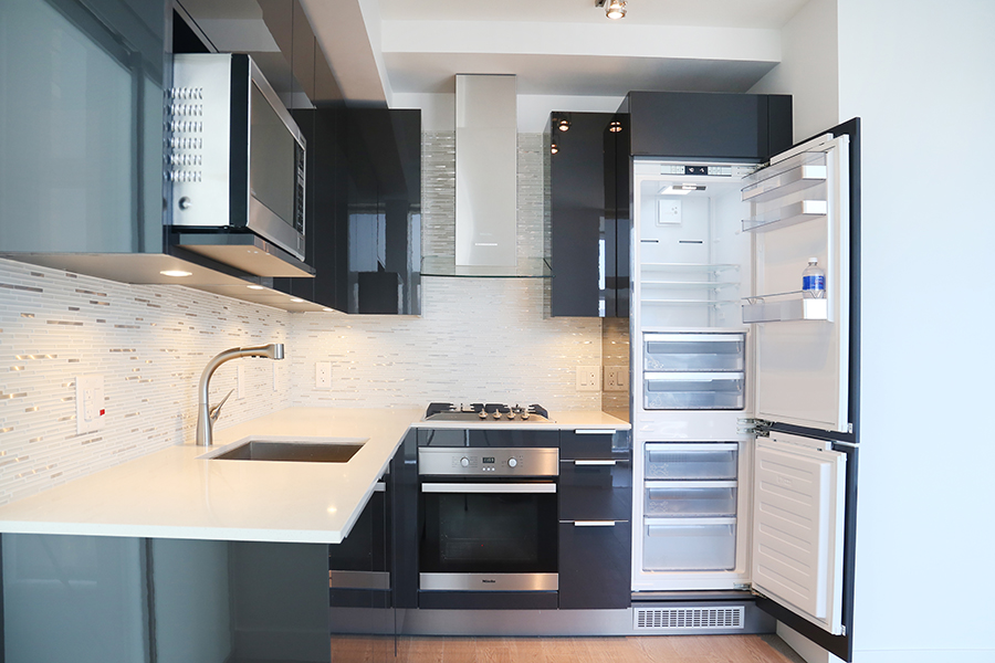 Features Include two sunny bedrooms with large windows and roller blinds, full 4-piece bathroom, individually controlled heating, laminate flooring throughout living areas, plush carpet in bedrooms, open plan kitchen with European cabinetry systems, elegant polished-edge quartz countertops, stainless steel appliances, private enclosed balcony with expansive city views, in-suite washer and dryer, ane large flex space. Over 11,700 sqft of indoor/outdoor amenities in the building include 24 hour concierge, fireside lounge and library with over-height ceilings, social room with chef’s kitchen and formal dining area, 2,100 sqft gym with change rooms and showers, 12-seat surround sound theatre, landscaped terrace garden, business facilities – meeting room and conference room.