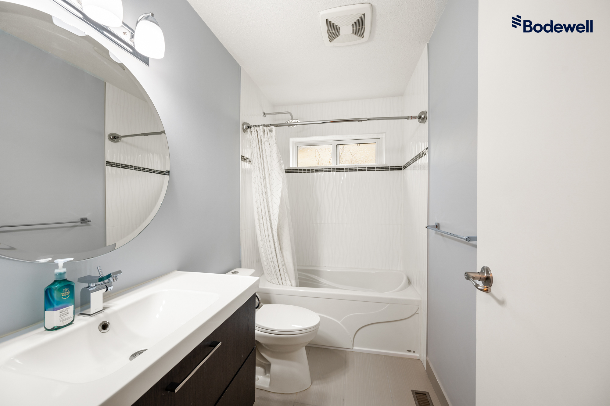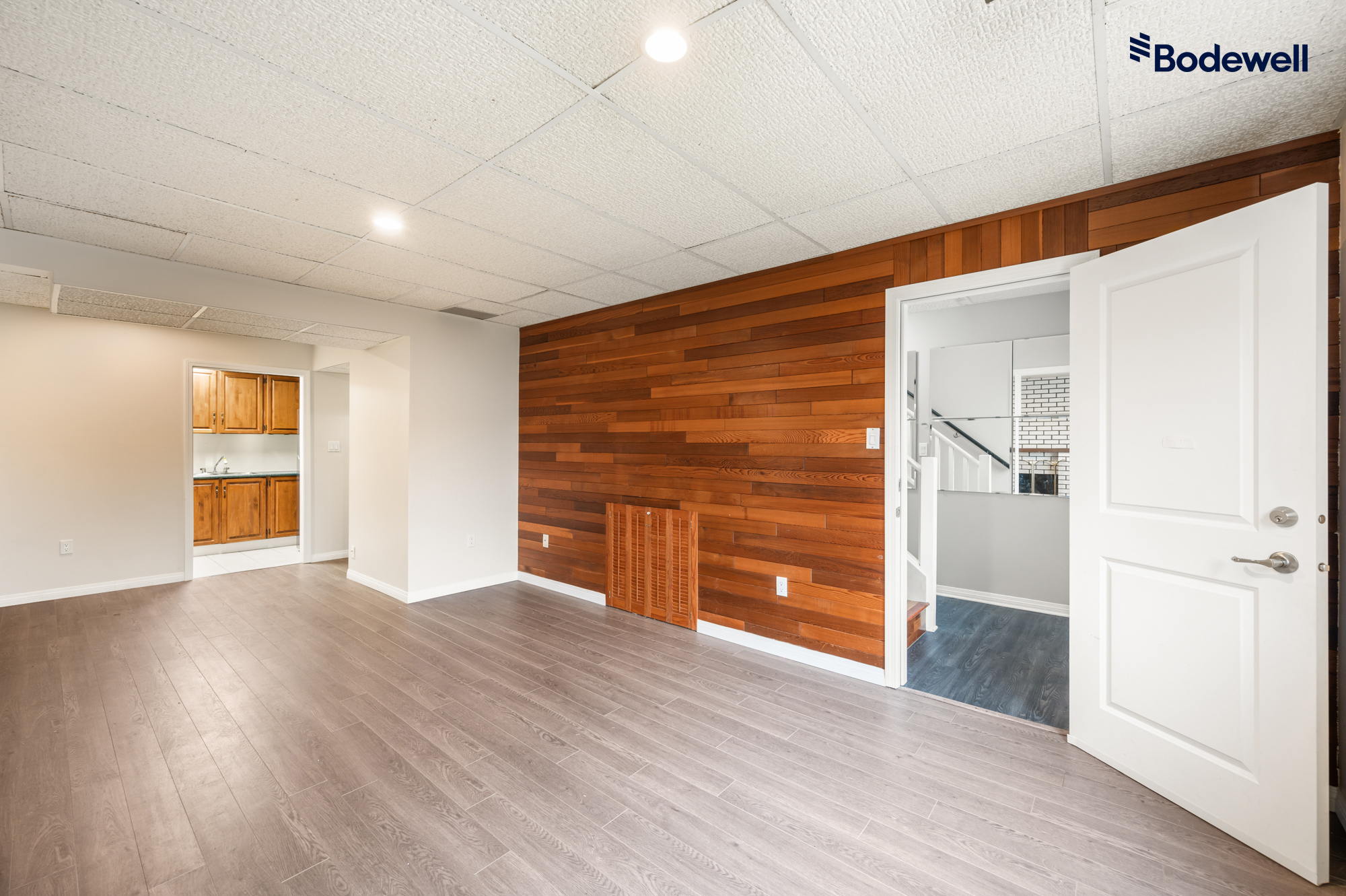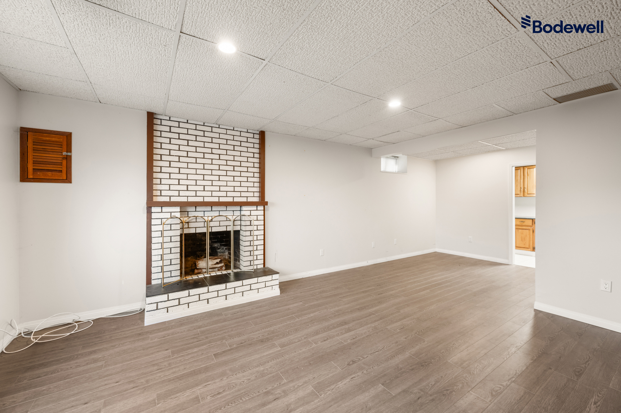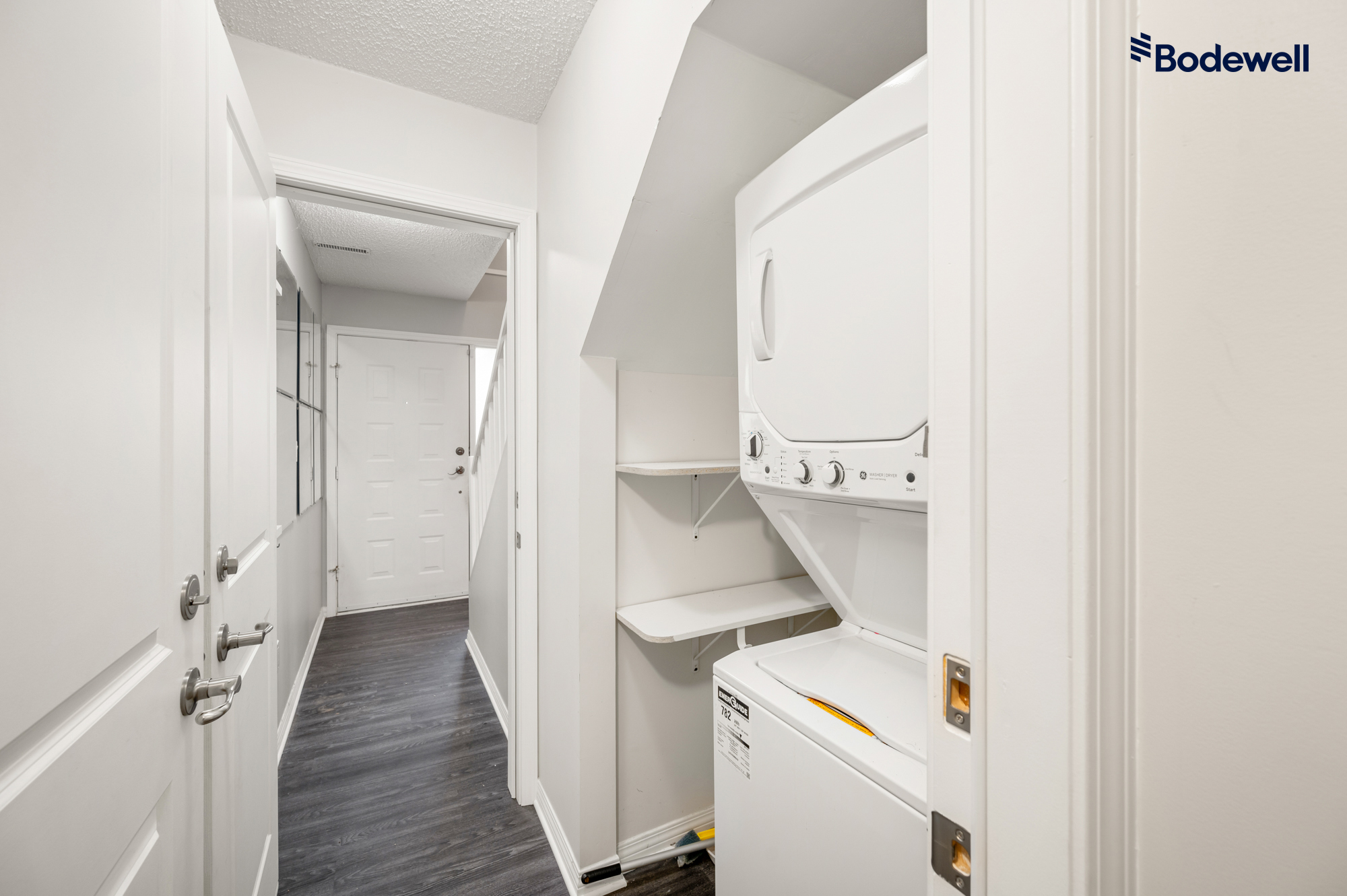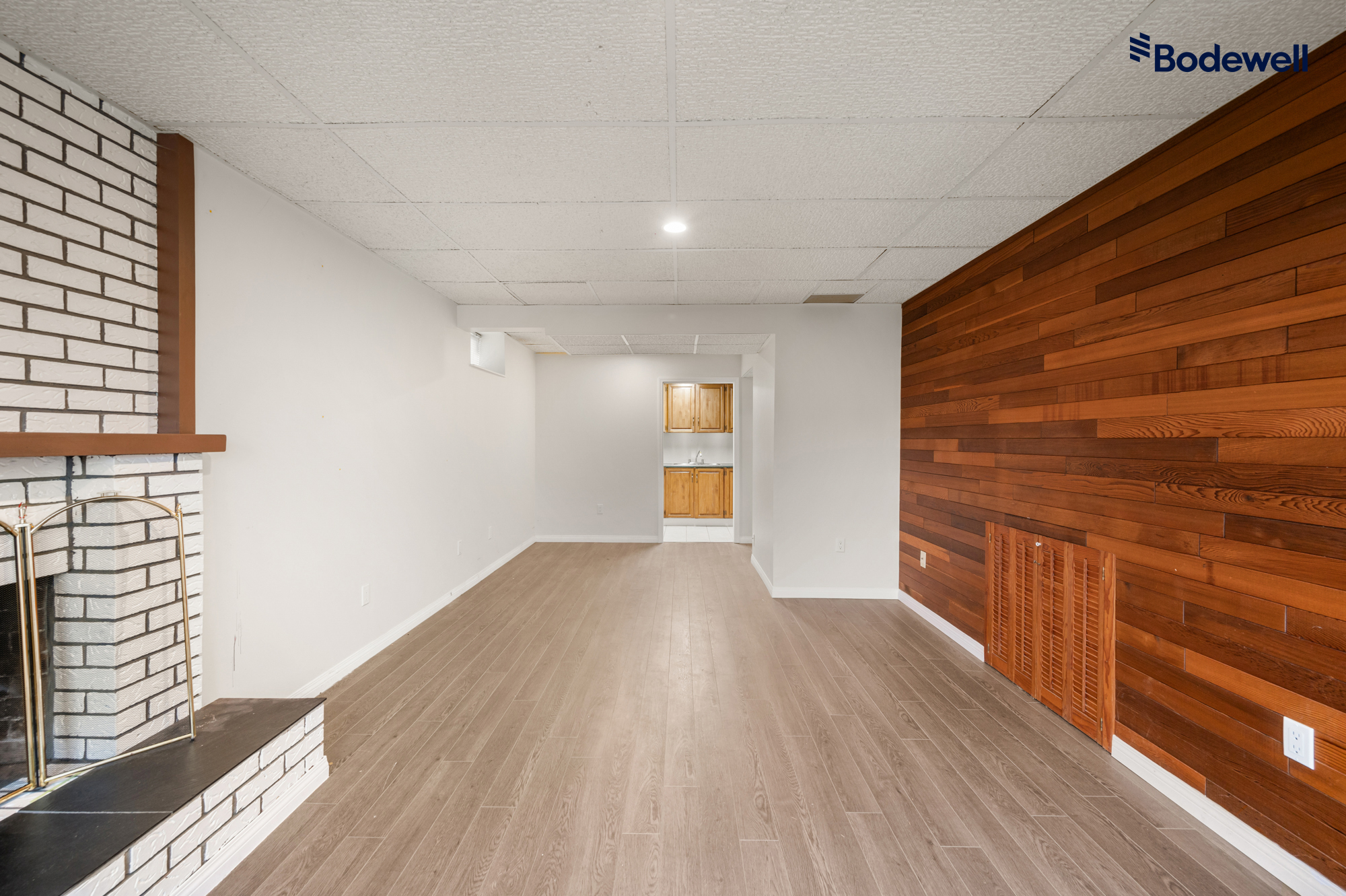Features in this spacious two-level home include upper floor with main living spaces (3 beds + 2 baths), lower floor with garage access and an in-law suite (1 bed + 1 bath). Primary bedroom with ensuite bathroom, thoughtfully designed & updated main kitchen with plenty of storage, quartz kitchen island, countertops & backsplash, stainless steel Samsung appliances: fridge, gas stove, dishwasher, and microwave, large covered ceck directly off of kitchen (with patio furniture), wood burning Fireplaces in both upstairs and downstairs living rooms, laminate flooring throughout living areas, carpeted bedrooms & tiled Kitchens. In-suite washer and dryer