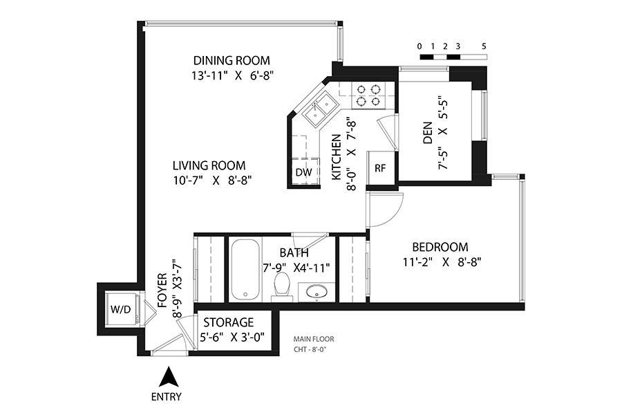 Bright, Corner 1 bed+den w/ floor-to-ceiling windows