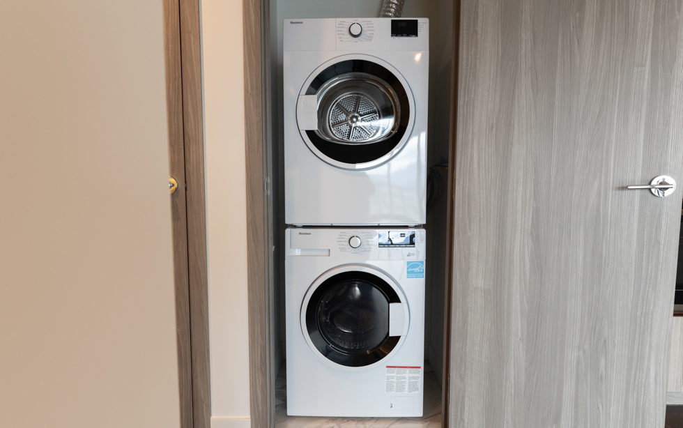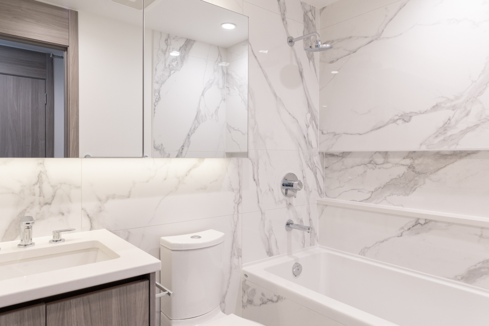 Features in this brand new unit include dark roller shades, in-unit central heating & air conditioner, unobstructed mountain views, 200 sqft of balcony, modern kitchen with island and quartz counter tops, full-size Stainless-steel & integrated appliances, smart home thermostat, covered balcony with radiant heat, and in-suite washer and dryer