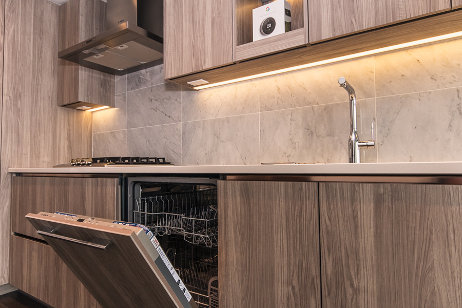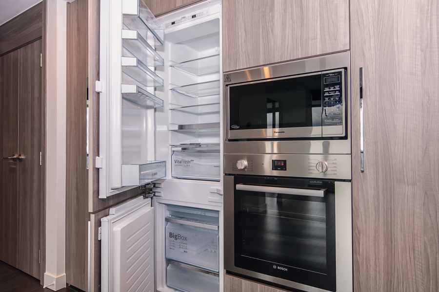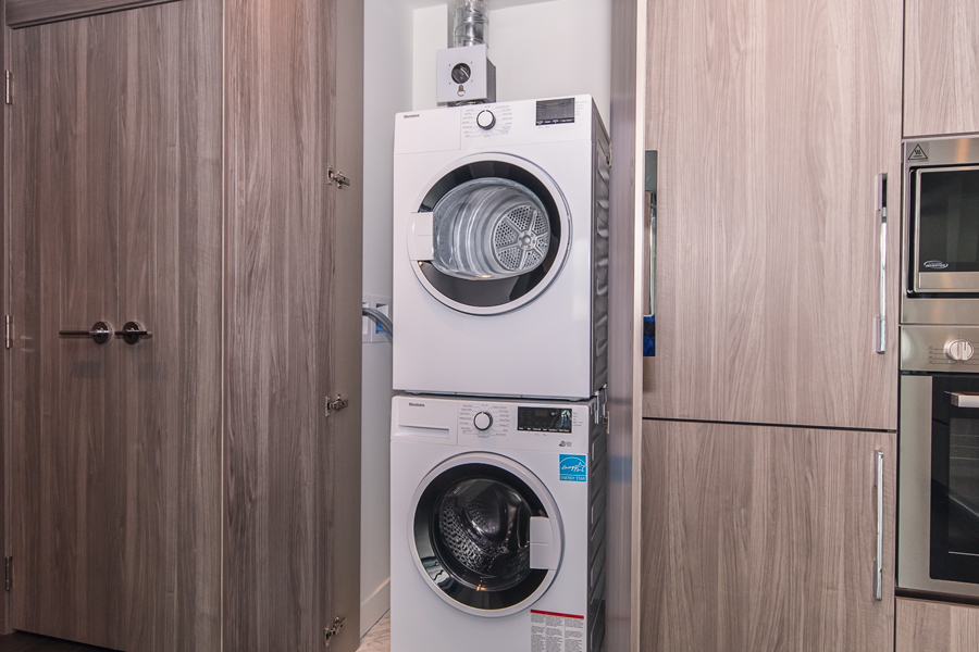 Features in this brand new unit include, unobstructed city and mountain views, 188 sqft covered balcony, in unit central heating and air conditioning, dark roller shade window coverings, modern Kitchen with quartz counter tops, full-size Stainless-steel and integrated appliances, smart home thermostat, and in-suite washer and dryer