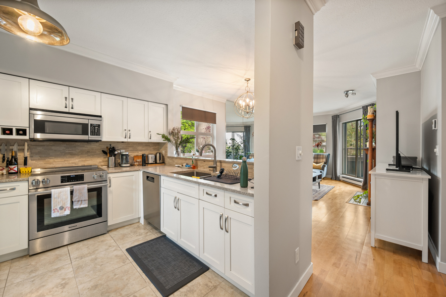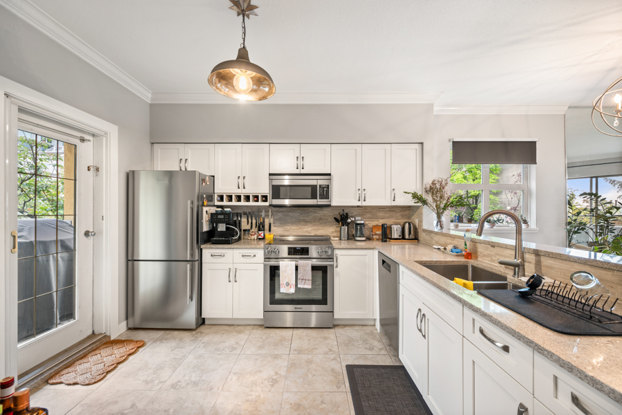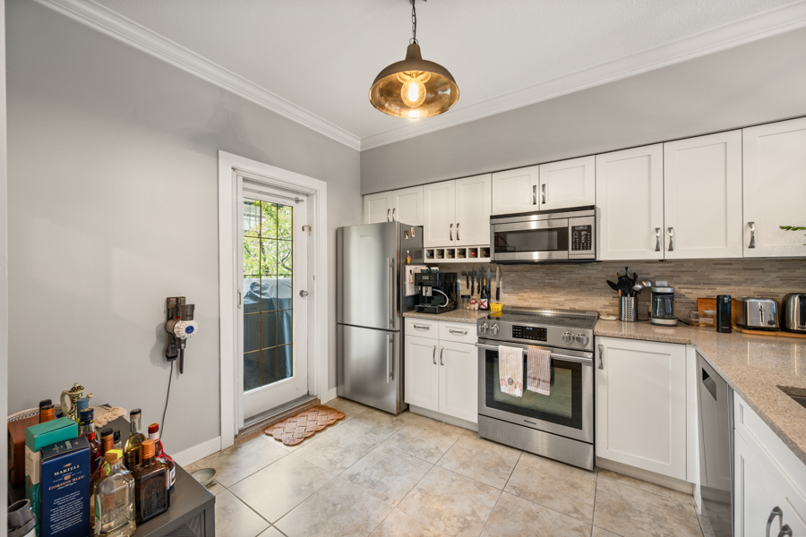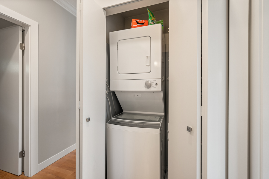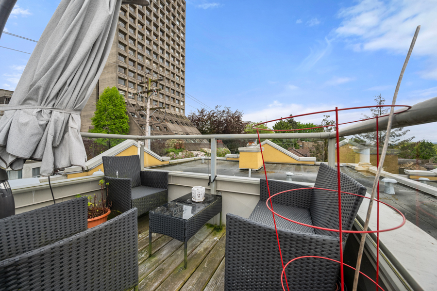 Features in this spacious fully furnished unit include 2 private patios and 1 shared rooftop deck, high-end stainless steel and integrated appliances: fridge, cook top, oven, dishwasher, and microwave, primary bedroom with balcony allowing lots of natural light, hardwood flooring throughout, and in-suite washer and dryer.