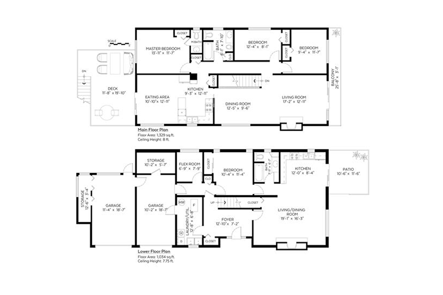 Features include original character details, two wood burning fireplaces, two full kitchens, flex room with windows, perfect for an office, spacious dining rooms, primary bedroom with ensuite bathroom, laundry room with washer and dryer, 120 sq ft outdoor deck, 2 separate enclosed garages, and south facing backyard.