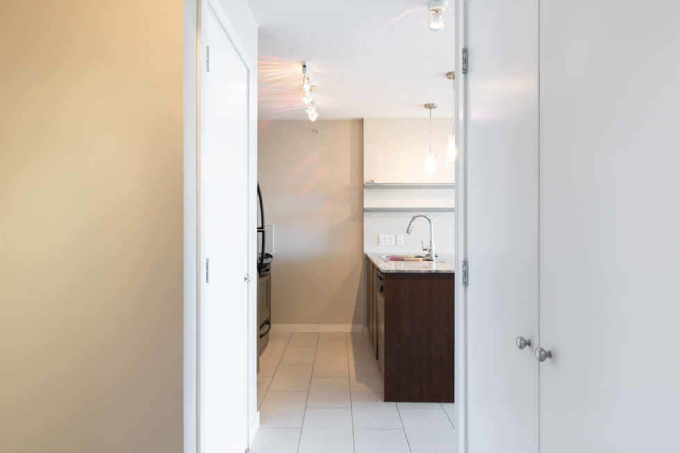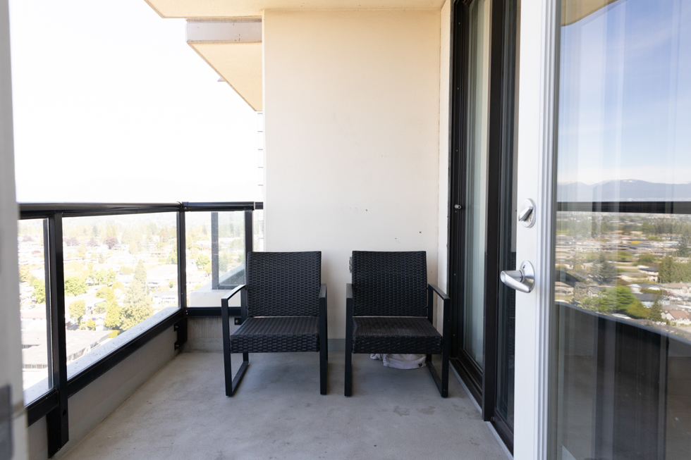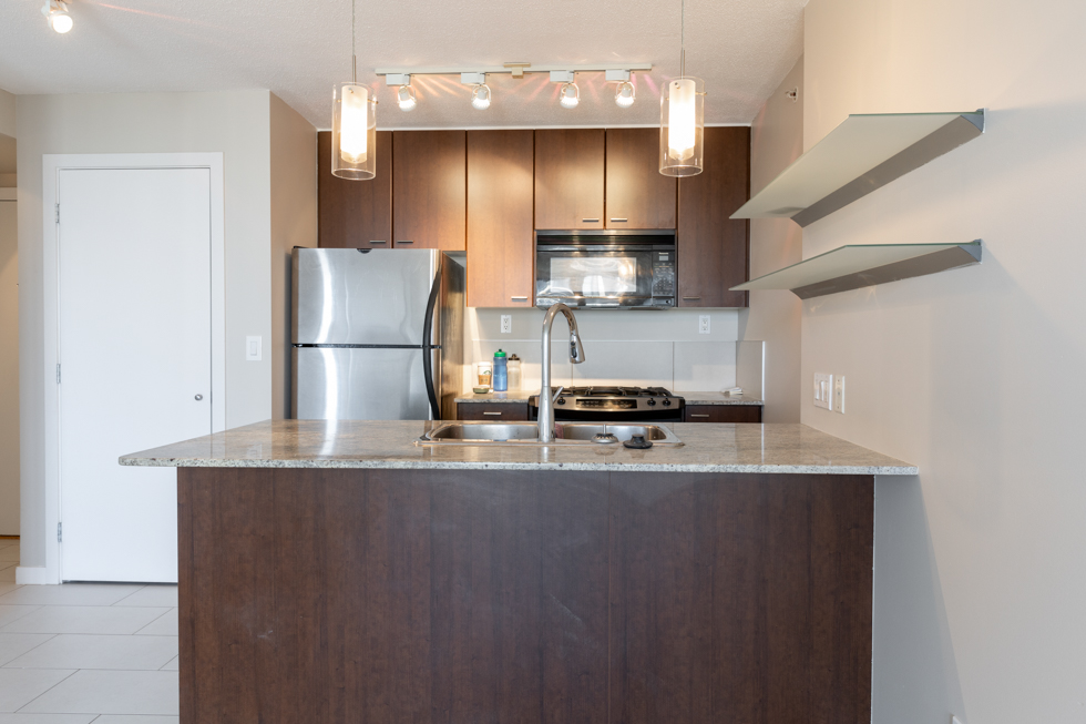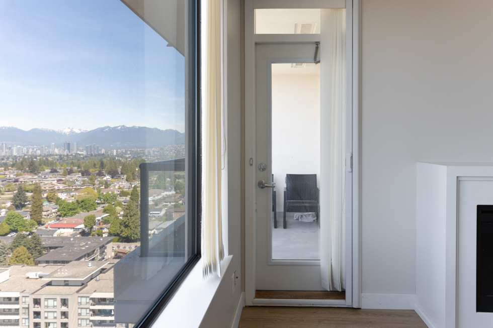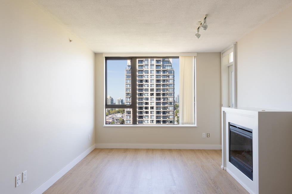 Features in this 22nd floor unit include an open kitchen with Granite countertops and full-size stainless steel appliances: fridge, stove, dishwasher, and microwave, electric fireplace. It’s been freshly painted and updated with new laminate flooring and blinds. It also has a balcony with access from both the bedroom and living area, floor-to-ceiling windows, and stunning views of Vancouver and Burnaby. In-suite washer and dryer