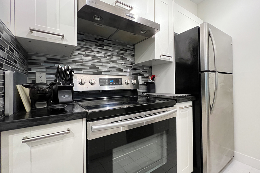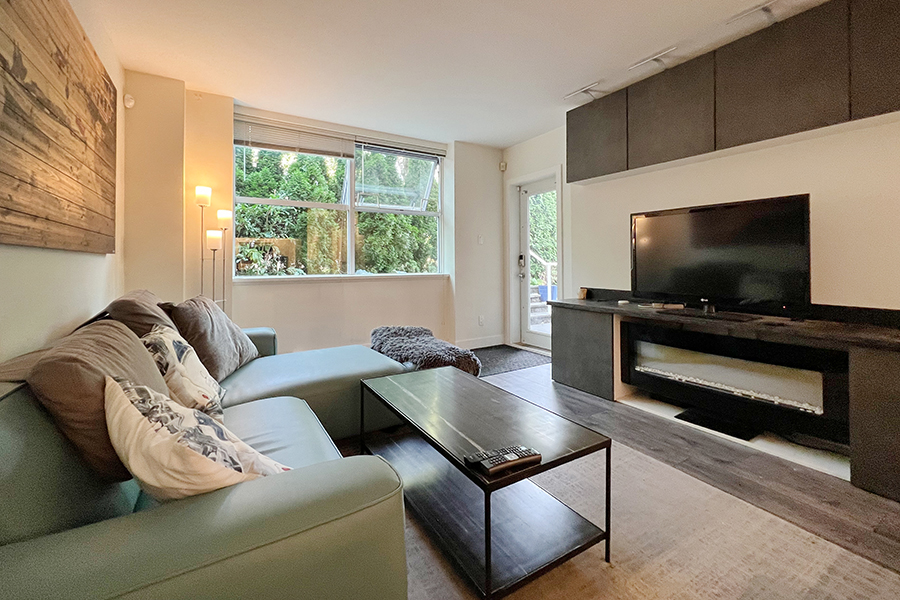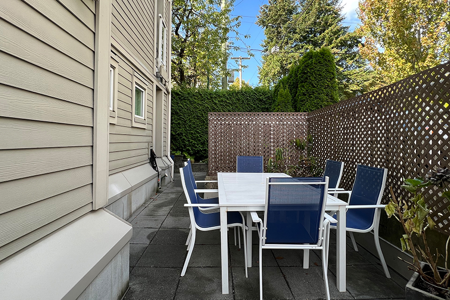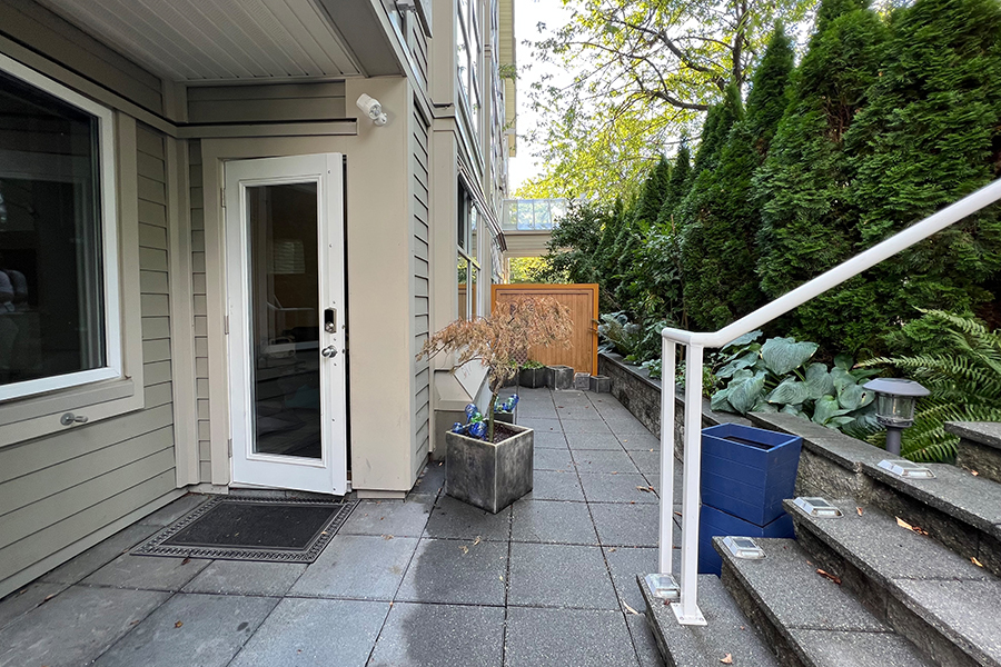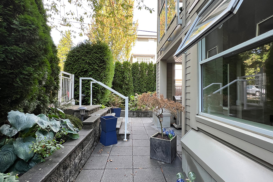 Features include private wrap around patio with street access, modern, renovated kitchen, full-size Stainless-steel appliances: fridge, stove & oven, and dishwasher, spacious in-suite storage, additional storage locker on the same floor & lockable underground bike storage, in-suite washer and dryer, and quiet tree-lined neighbourhood.