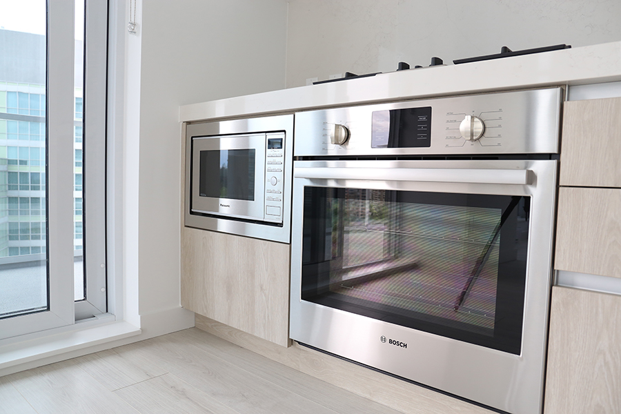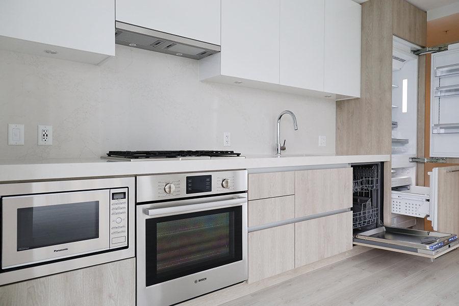 Features in this corner unit include open plan living, large windows & high ceilings to allow plenty of natural light, stainless steel and integrated appliances: Refrigerator, Dishwasher, Gas Stove, Oven, and Microwave, engineered wood flooring throughout, primary ensuite bathroom, spacious private outdoor patio, south-West views, and in-suite washer and dryer