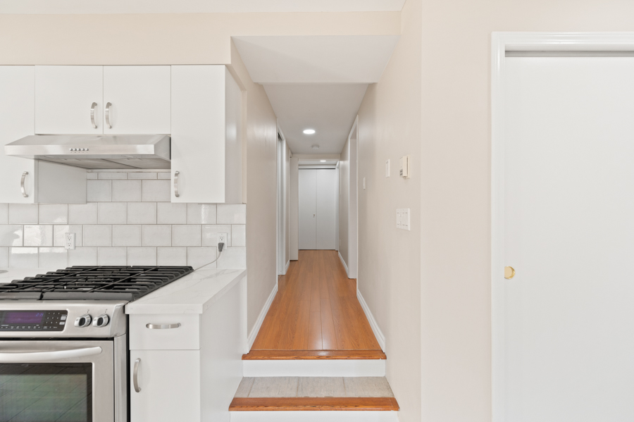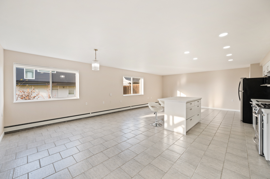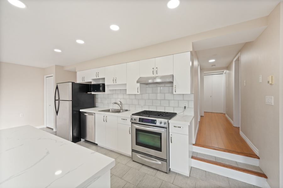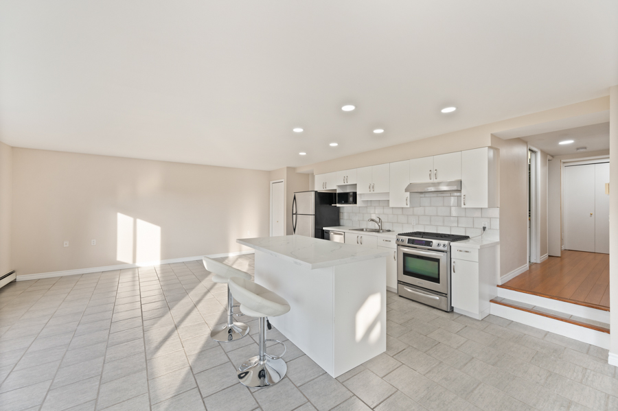 Features in this above ground unit include 2 private outdoor patio spaces (one is covered), Large open plan living space, 2 Zone High Energy radiant heating with tenant controlled thermostats, Kitchen with breakfast bar island and stainless steel appliances: Fridge, Stove w/gas cooktop, and Dishwasher, Tile flooring throughout living spaces, laminate flooring in bedrooms, Bathroom features a Whirlpool bathtub, and Generous sized bedrooms with large closets. Shared washer and dryer.