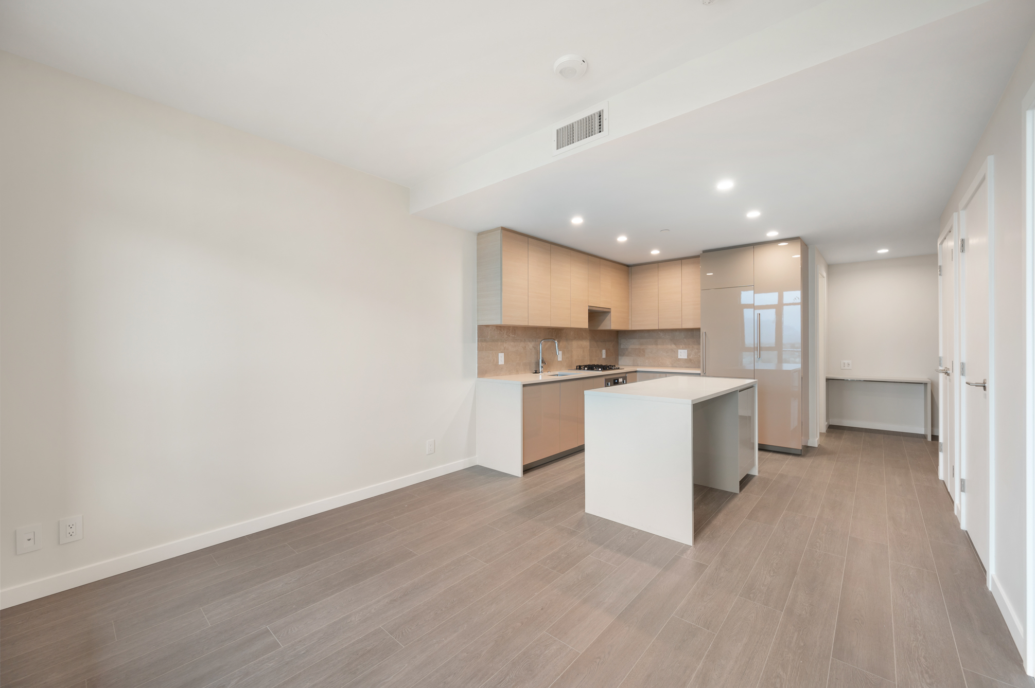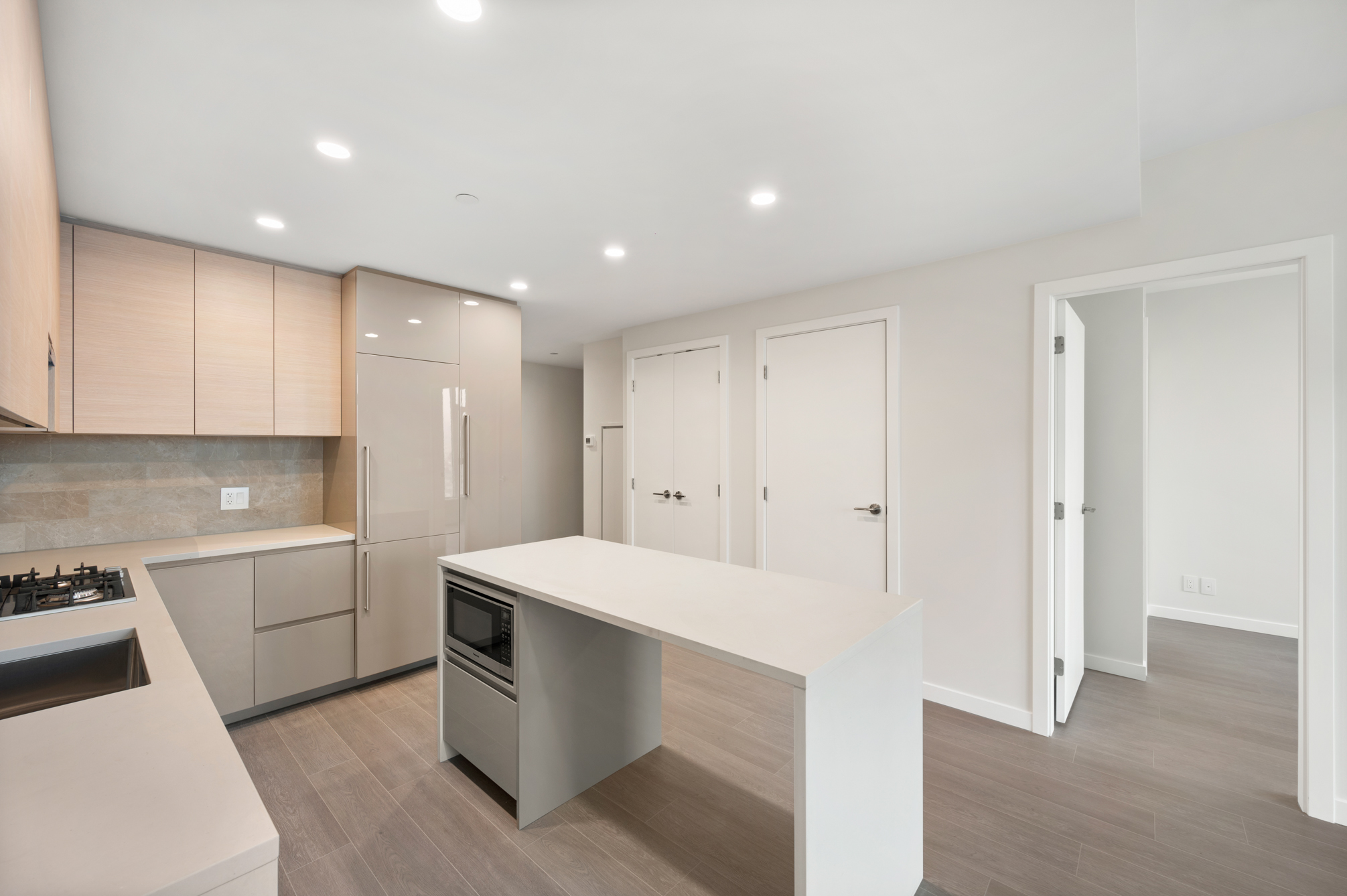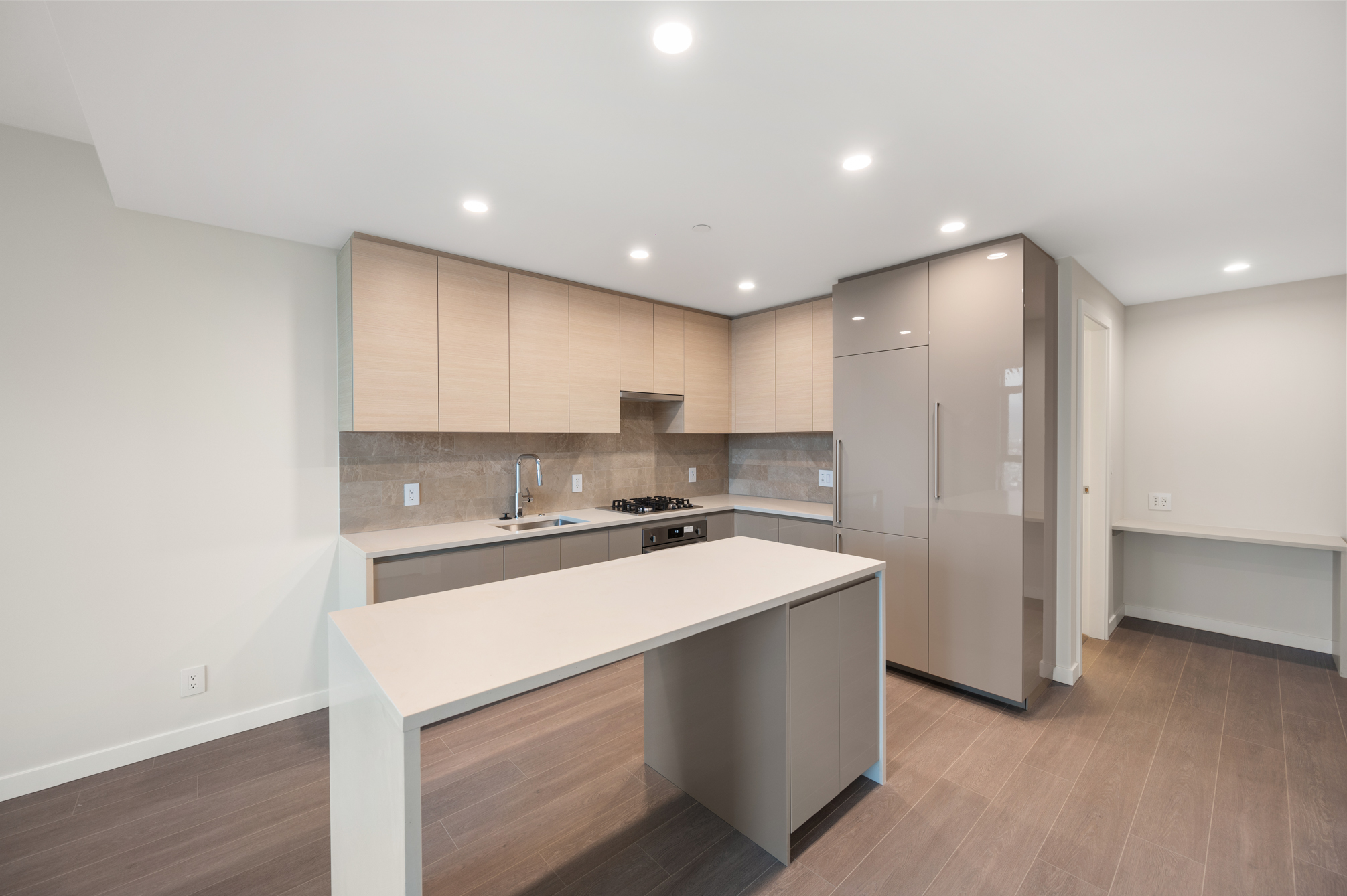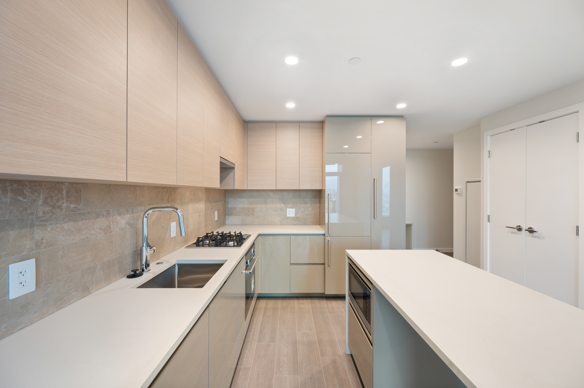 Enjoy the views from this 27th floor unit. Features include high-end stainless steel and integrated appliances: Fridge, Fulgor gas cook top, oven, dishwasher, and microwave, quartz kitchen island, countertops & backsplash, built-in nook for work space, central air-conditioning & heating, unobstructed city and mountain views, private balcony, and in-suite washer and dryer