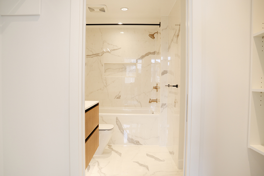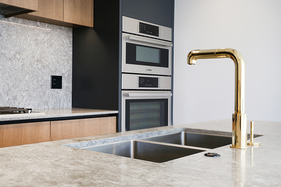 Features Include: Open plan living, Premium integrated appliances: Fridge, Dishwasher, Gas Cooktop, Wall & Speed Oven, Quartz countertop and backsplash, Large kitchen island, Engineered herringbone flooring , High efficiency heating and air conditioning, Spacious bedrooms with walk-in-closet and ensuite bathroom with in floor heating , Large patio, In-suite washer and dryer
