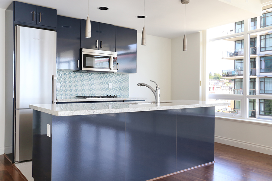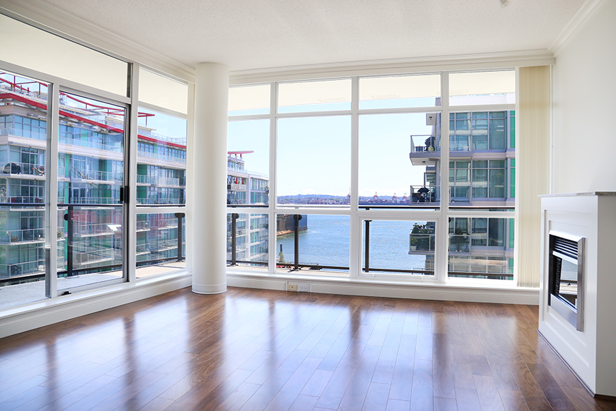 This South-East facing bright corner unit features water and city views, air-conditioning, open plan kitchen with granite kitchen countertop and plenty of storage, stainless steel appliances (fridge, gas stove/oven, dishwasher and microwave), master bedroom with walk-in closet and ensuite bathroom with double vanity, electric fireplace, 9’ ceilings, wrap-around covered patio, and in-suite washer and dryer.