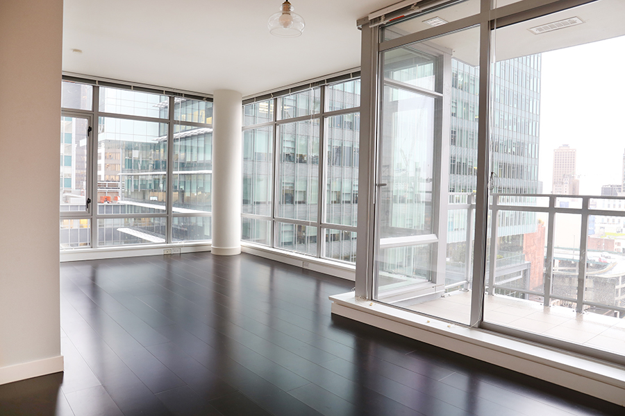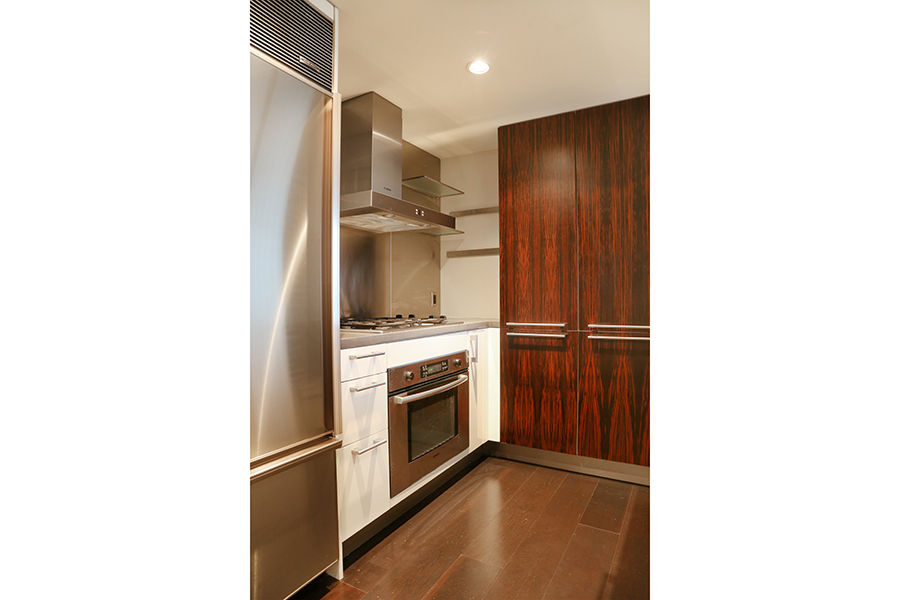 Features in this bright corner suite include floor-to-ceiling windows that bring abundant natural light, chef-inspired kitchen with full-sized stainless steel appliances (Sub-Zero, Bosch), 5 burner gas stove, engineered wood flooring throughout living and dining rooms, air-conditioning, panoramic City and Mountain views, and in-suite washer and dryer.