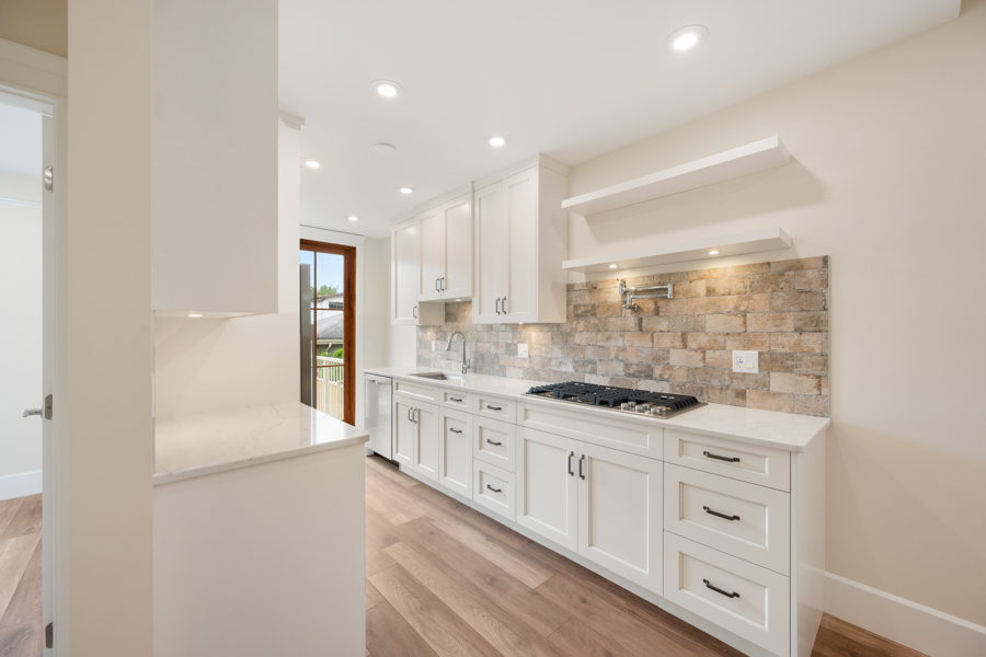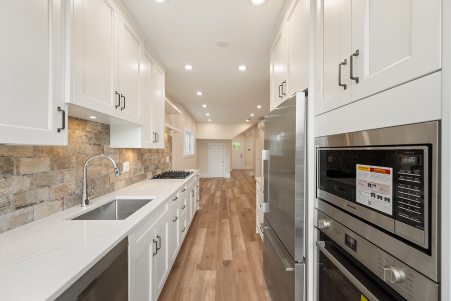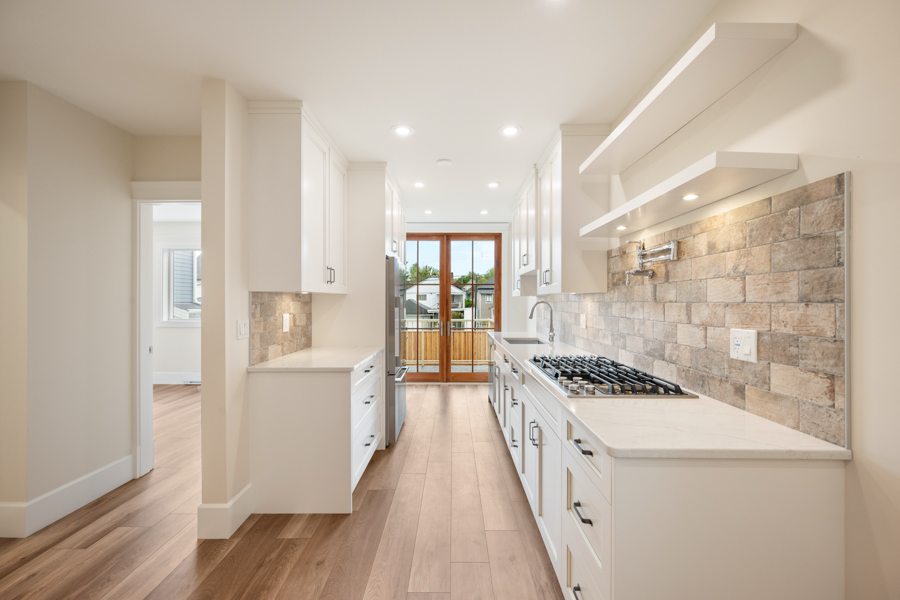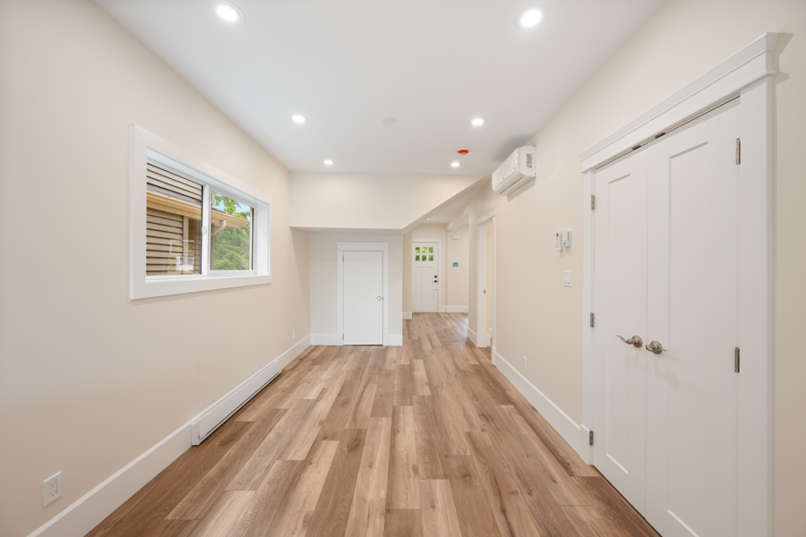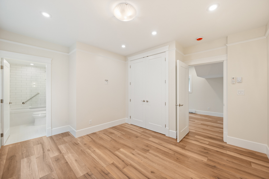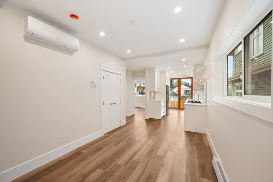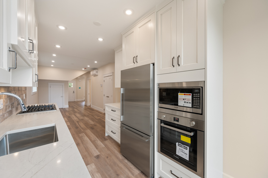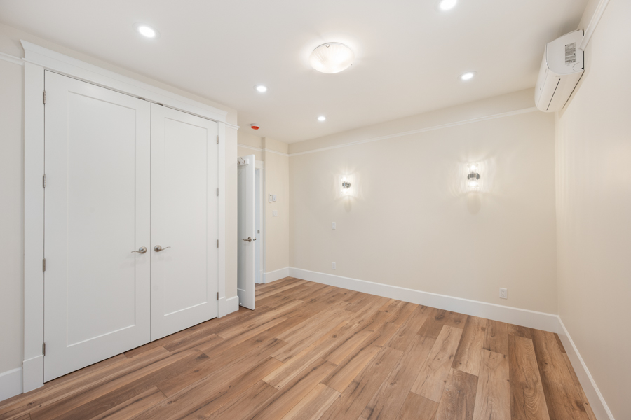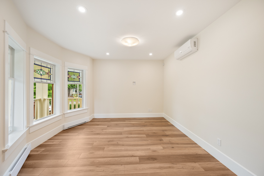 Features in this fully rebuilt and modernized character home include 10′ ceilings, brand-new flooring, walls, ceilings, and light fixtures throughout. Gourmet kitchen with Pot Filler Arm water dispenser, brand-new stainless-steel appliances: Downdraft Gas Cooktop, Oven, Microwave, Fridge, and Dishwasher. French doors open up from the kitchen onto an 80 sq ft private deck with gas BBQ hookup. Additional storage just off of the dining area. Independently controlled air-conditioning and Security System. Shared newly landscaped backyard. Recessed outlet and cable hookup in living room – ready for a mounted TV. The living room and each bedroom have fibre and cable installed for high-speed Wi-Fi, data, TV, and communication. Accommodating and supporting independent uses for entertainment or as a home office. Shared bike rack/lockup area. In-suite washer and dryer.