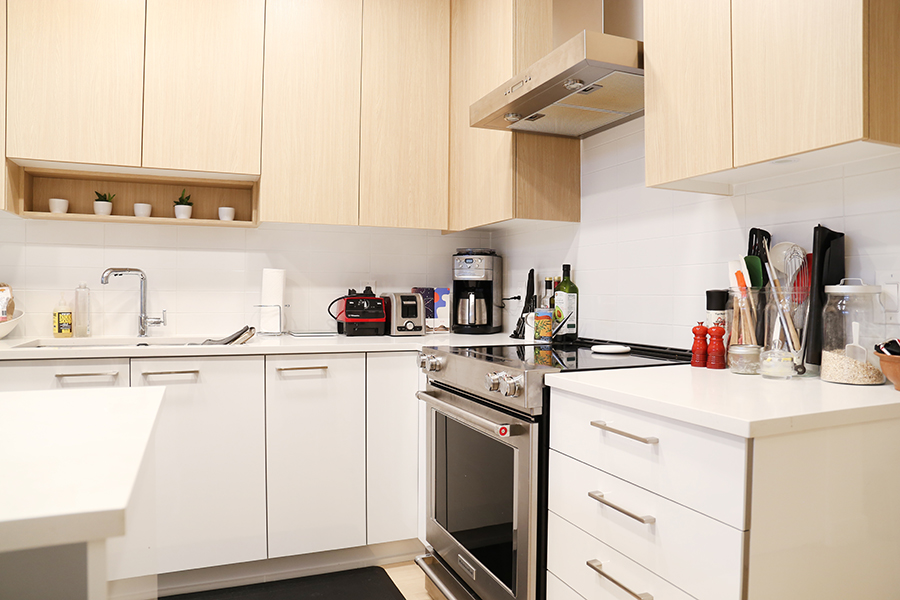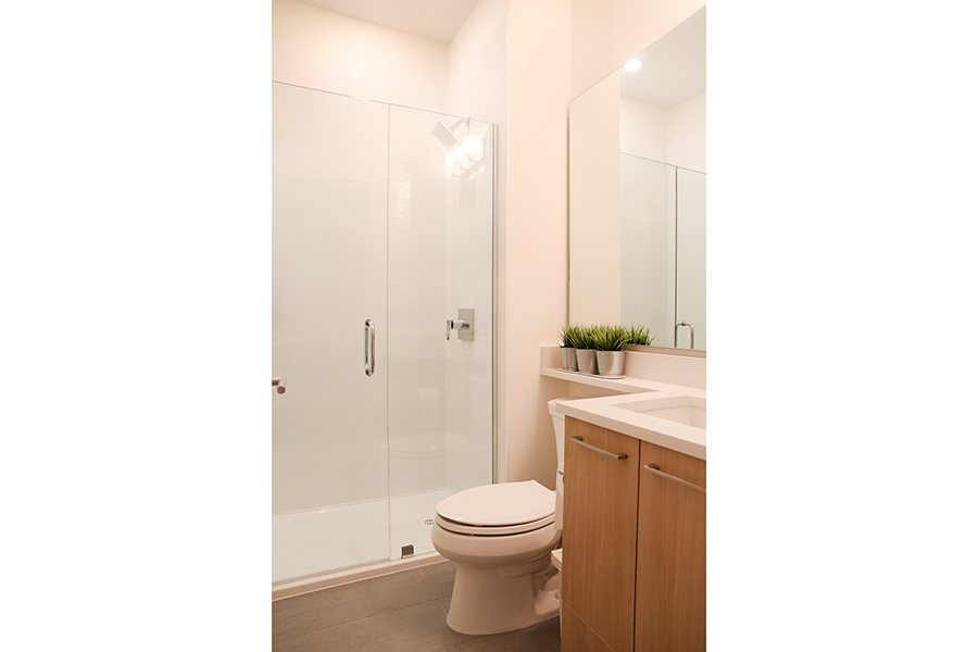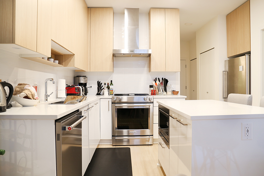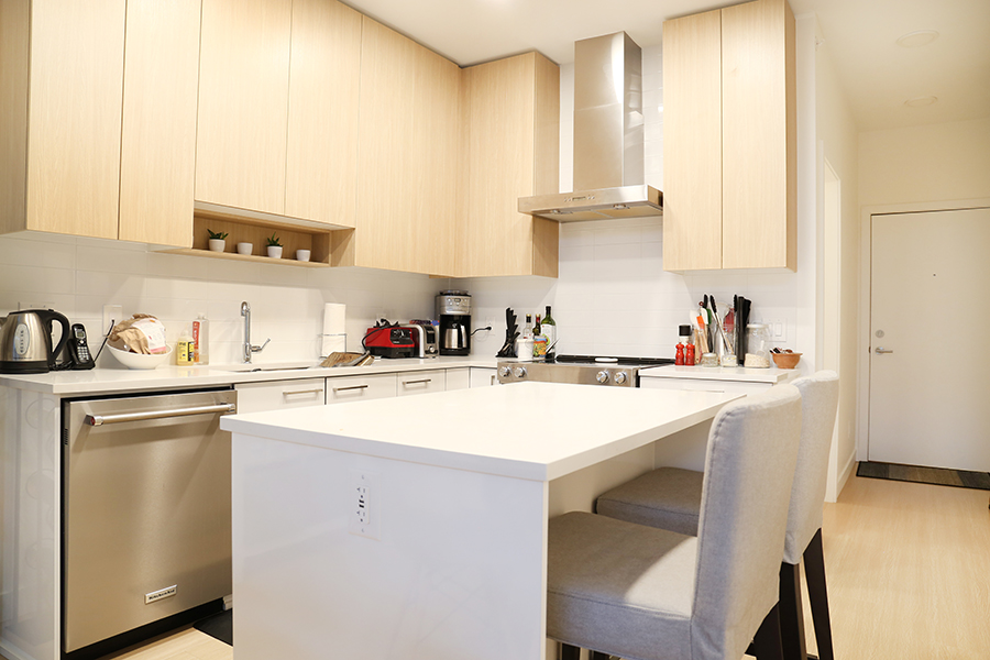 Premium full-sized, stainless-steel appliances, including dishwasher and microwave, spacious master bedroom with walk-in closet, ensuite bathroom, large private balcony, in-suite washer and dryer, gym located in the building.