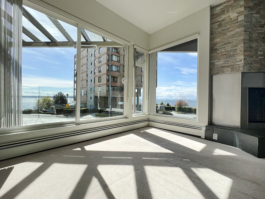 Ocean views from every level! Fall asleep listening to the waves from this bright semi-water front townhouse located on prestigious Bellevue Avenue. South West corner unit in triplex. Split level living with three bedrooms, recreation room, three bathrooms and two half bathrooms. The main floor is great for entertaining with an open floor plan, wood burning fireplace and patio. Perfect for watching sunsets. Private primary suite on top floor with yet another patio and ocean views. Nanny or in-law one bedroom suite with bathroom, kitchenette, separate entrance and private courtyard. Amazing location – steps to Seawall, WV Community Centre, Library and Dundarave Village. First time on the market in 20 years.