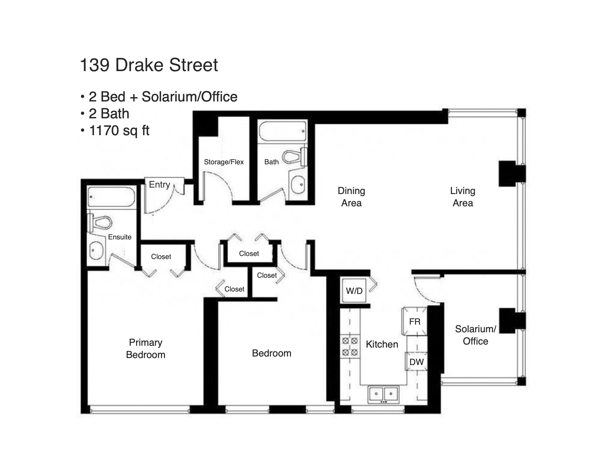 Features in this 2nd floor unit include two Spacious bedrooms, ensuite main bathroom, full size stainless steel appliances: Fridge, Dishwasher, Stove, Oven, granite counter tops, carpeting throughout, large solarium – perfect for a home office, and in-suite washer and dryer.