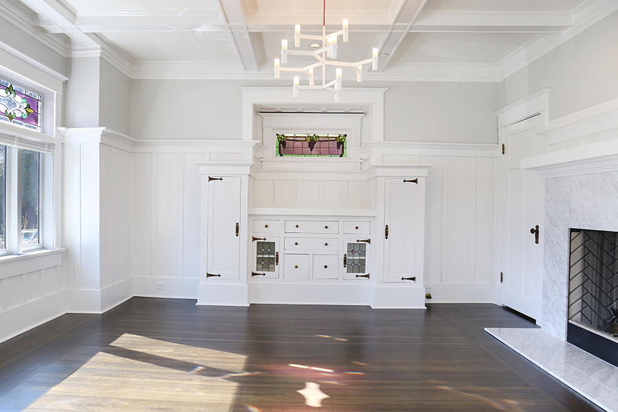 Features Include: Private entrance, Use of charming front porch and dedicated private back garden, Beautiful original details throughout, Restored original hard wood floors, Stained glass windows, Original built-in cabinetry, Over-height ceilings with exposed beams, Coffered ceilings and walls clad in original wainscoting, Carrera marble and brick gas fireplace, Modern lighting through out, Stainless steel appliances, new kitchen cabinets and stone countertops, Two large bedrooms with custom built closets organizers, Extensive soundproofing between neighbouring units, Alarm system set up – tenant is requested to pay for monthly alarm fee- approx. $55 per month, In-suite Bosch washer and dryer