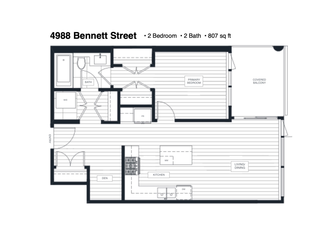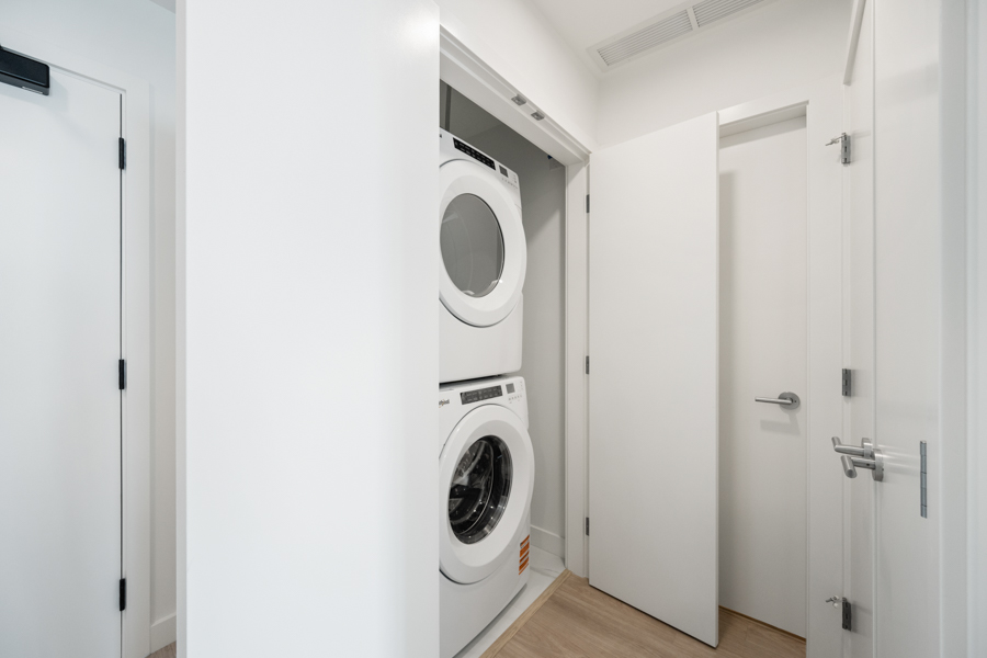 Private ~134 sq ft Covered Balcony. In-suite washer and dryer