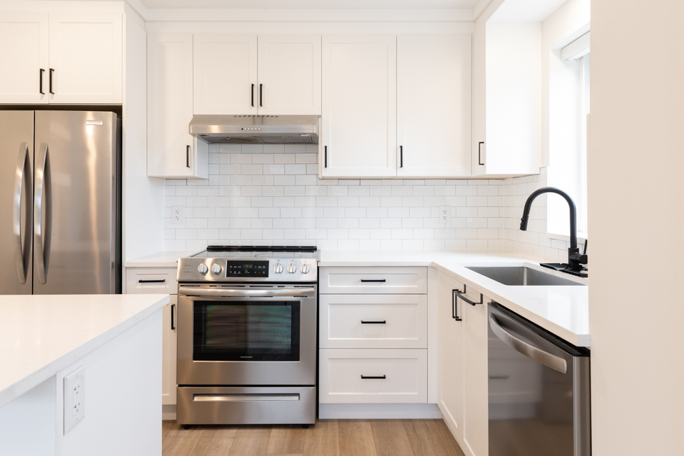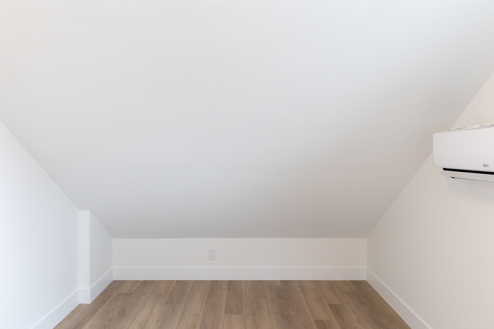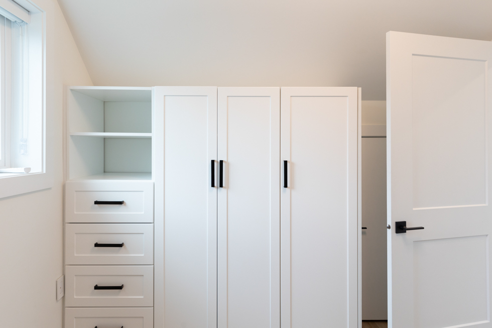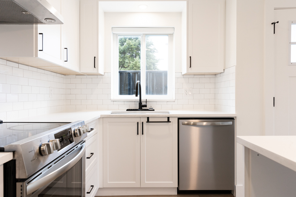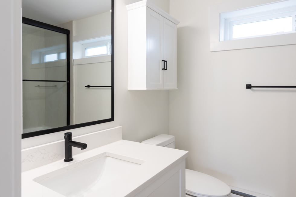 Features in this 2-level laneway home include a modern black & white colour scheme with black finishes throughout, laminate flooring, private entrance via gate, air Conditioning in living area and bedrooms, modern and bright kitchen with breakfast bar and full-size stainless steel appliances: fridge, stove, and dishwasher. A Primary Bedroom with walk-in closet and built-ins, and secondary bedroom with built-ins, as well as in-suite washer and dryer.