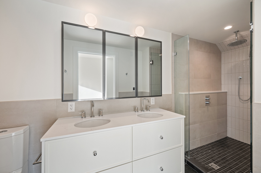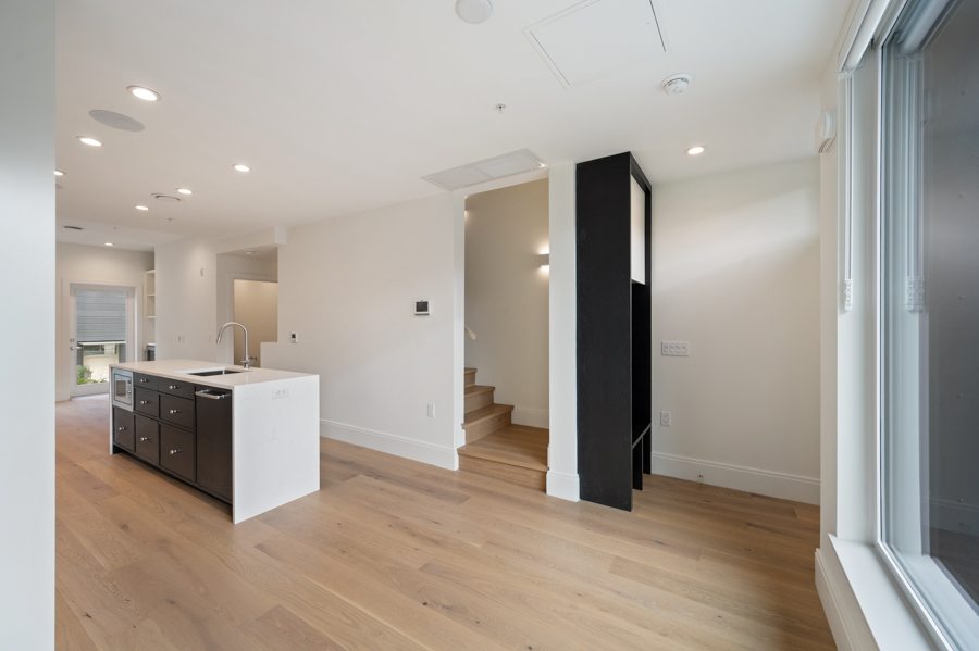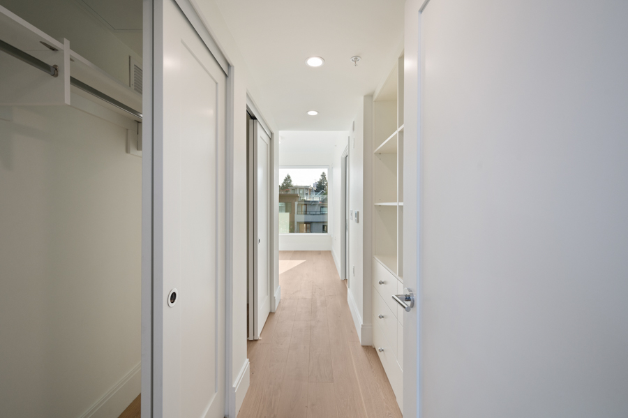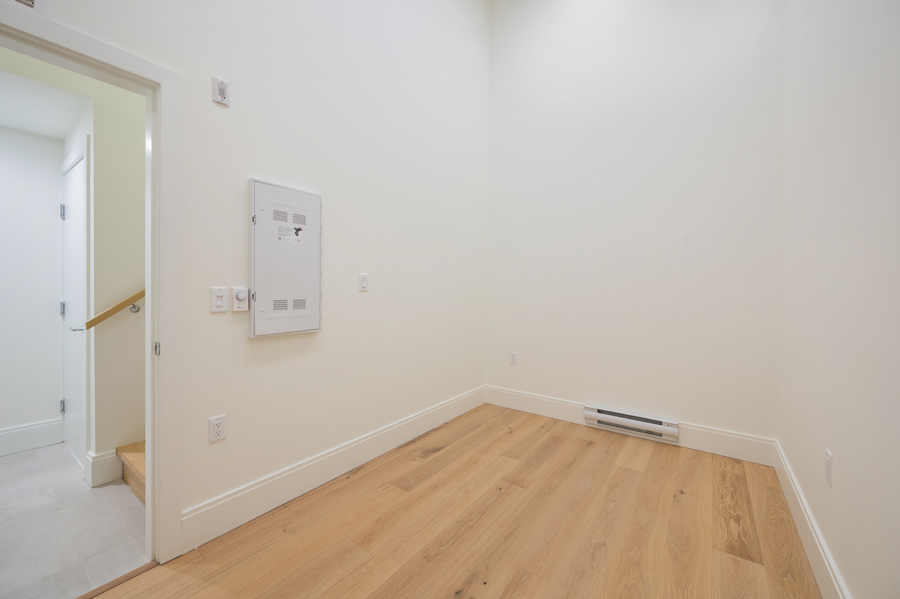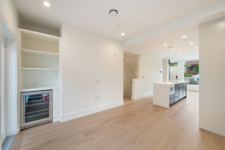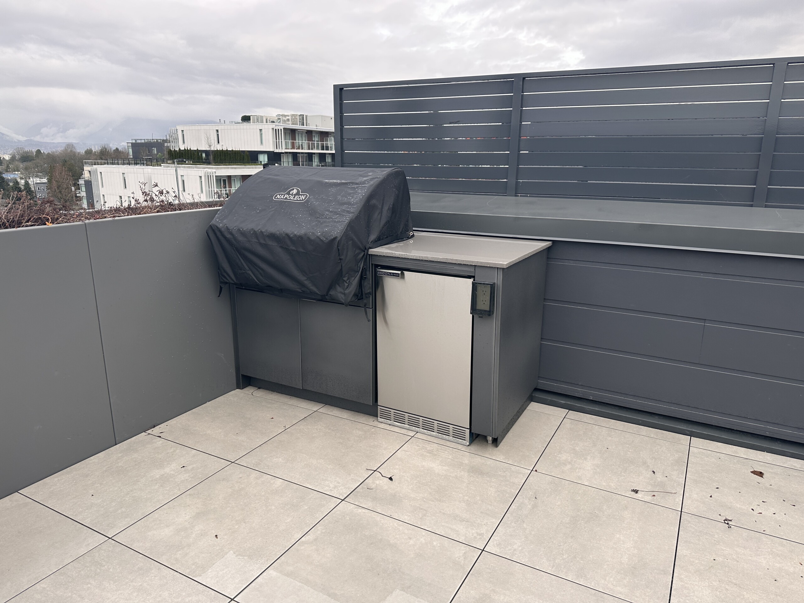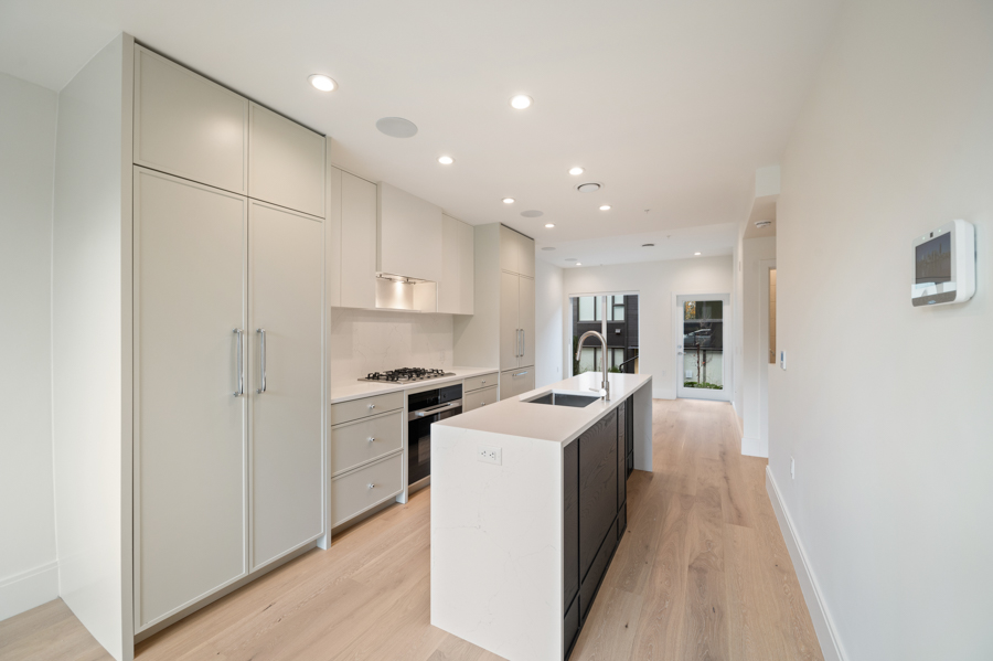 This 5 level townhome features wide plank engineered wood flooring throughout, large windows with roller blinds, 9’ ceilings on main floors, built in wet bar with wine fridge in living room, a high-end kitchen with integrated Miele appliances: fridge, gas cook top, oven, dishwasher, and microwave. Quartz waterfall island, quartz countertops and backsplash, under cabinet lighting, and plenty of storage, a powder room on main floor, spa-like bathrooms with high end finishes, a 4th room suitable size for office or nursery, basement flex space – suitable for den, larger office, storage, and more. It also has a smart home package with touchscreen and Alfred Lock system, 3 outdoor spaces (485 sq ft total), front entrance patio, 3rd floor balcony, and rooftop patio, rooftop patio has views of North Shore Mountains, outdoor kitchen, plus water and gas hookups, this home has central air-conditioning & heating, plenty of closet space throughout home, and direct access to the secured underground parking from the unit’s basement entrance, as well as in-suite washer and dryer.
