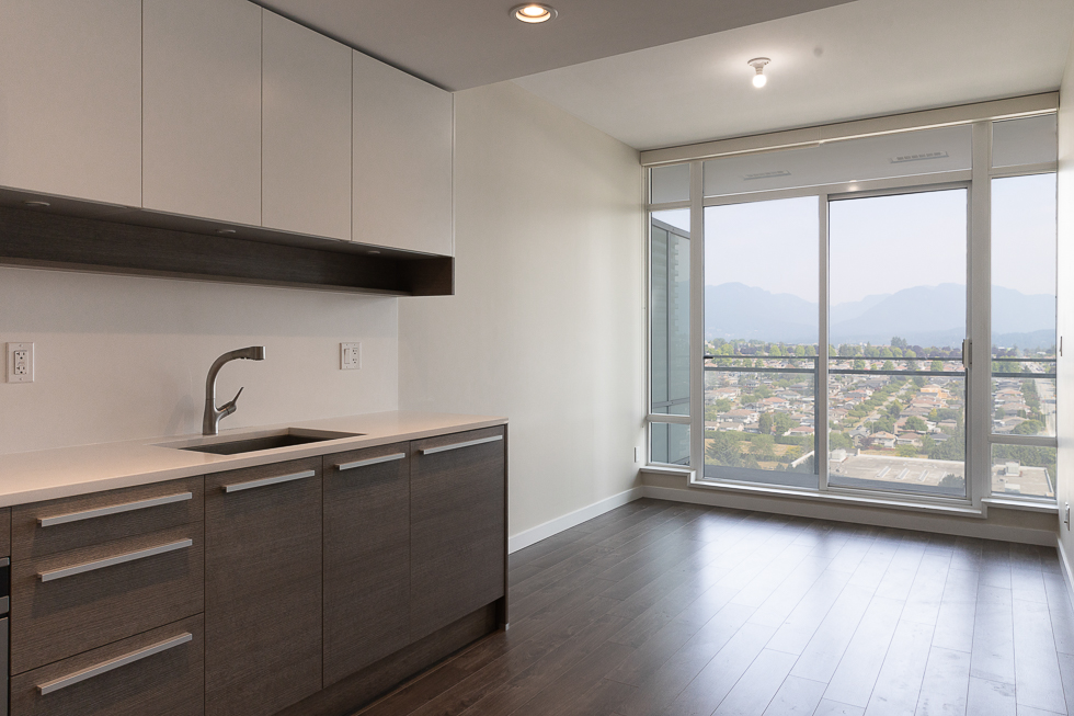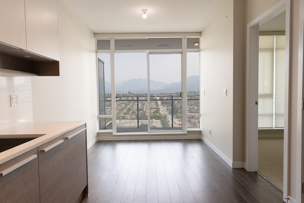 Features in this 18th floor unit include views of Burnaby & mountains, covered balcony, air conditioning, a cozy den space, 9’ ceilings, floor to ceiling windows, modern Kitchen with composite countertops, integrated and stainless-steel appliances, and in-suite washer and dryer