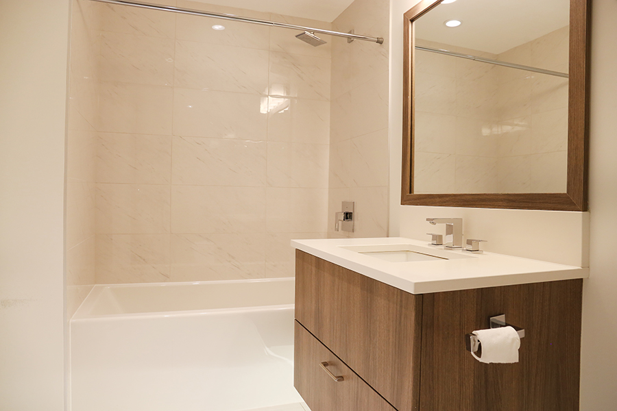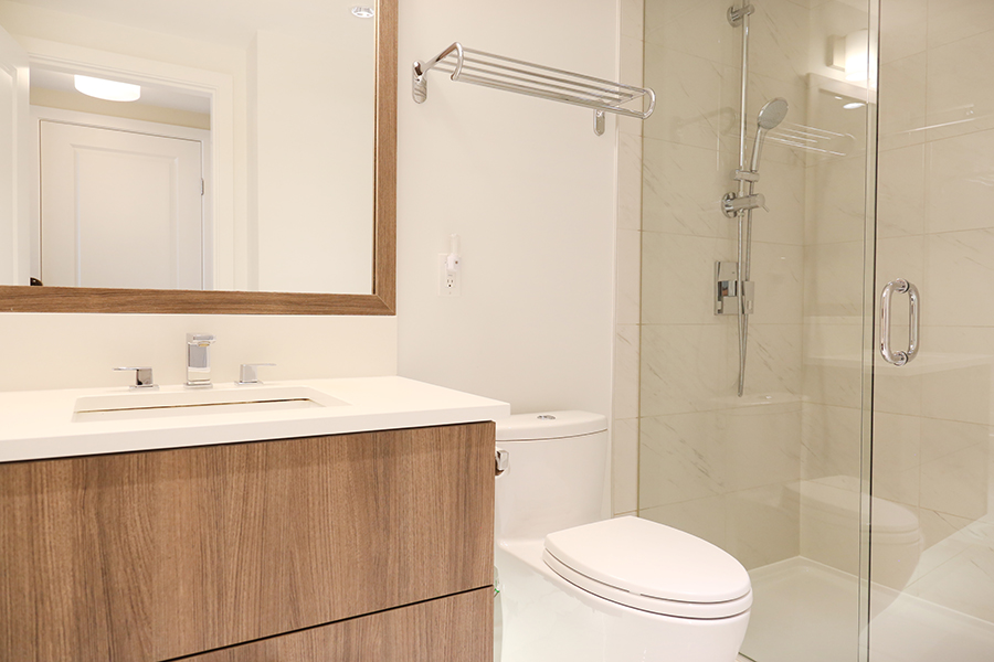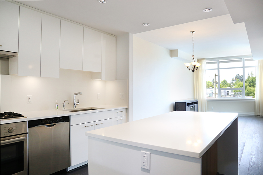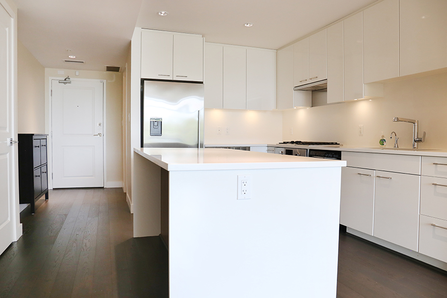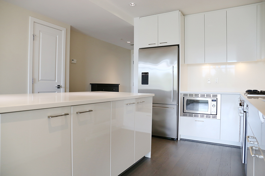 Features in this unit include high-end stainless steel and integrated appliances: fridge, gas cook top, oven, dishwasher, and microwave, quartz kitchen island, countertops & backsplash, instant hot water dispenser, central air-conditioning & heating, 9’ ceilings, spacious primary bedroom & walk-in-closet, primary ensuite bathroom with separate tub and shower, private patio, and in-suite washer and dryer.