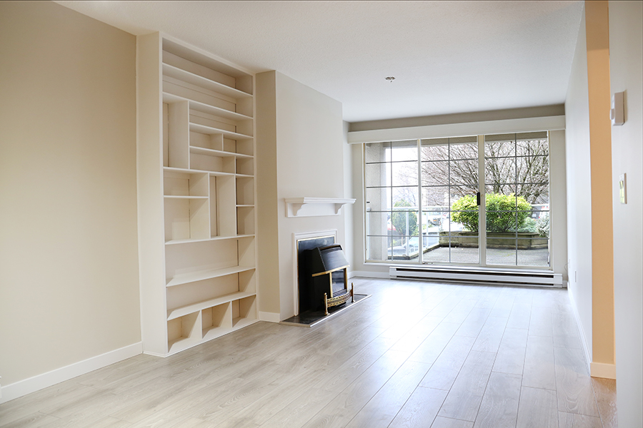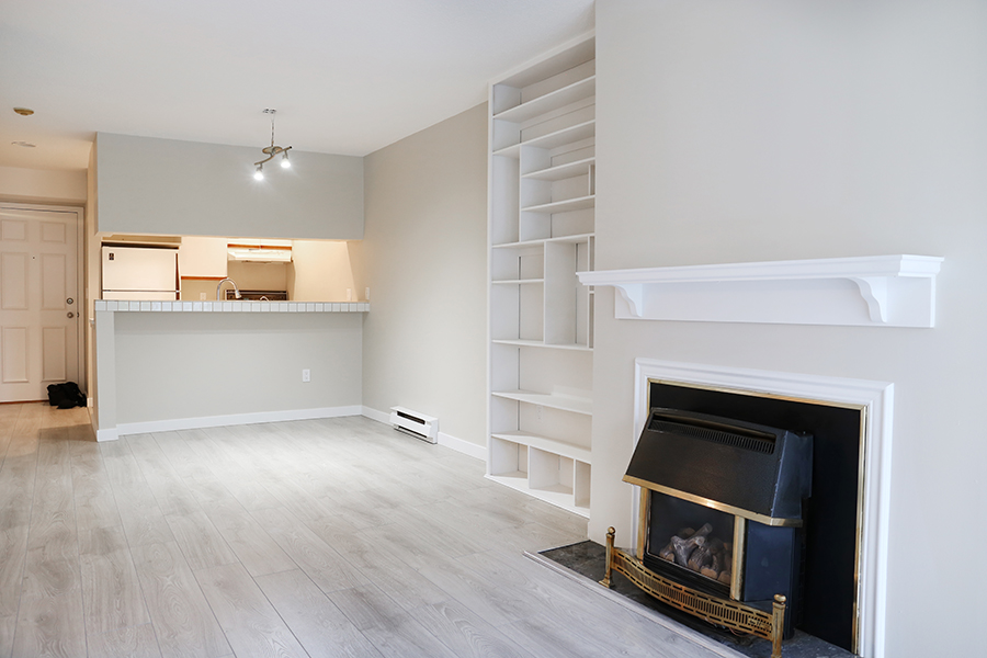 Features Include Spacious bedroom with abundant closet space. 1 full modern bathroom, Laminate wood flooring throughout the home, Sunny and spacious living room with gas fireplace, Renovated, open plan kitchen with ample storage space and stainless steel appliances, Fridge, stove, oven, dishwasher, In-suite washer and dryer, Private balcony with water views