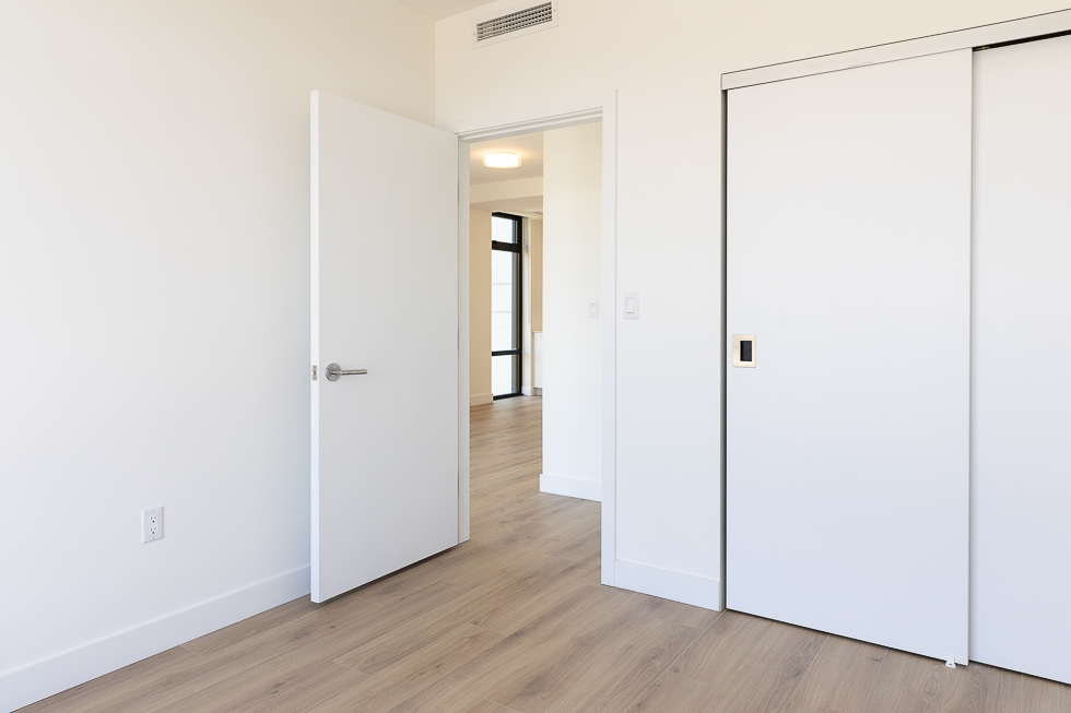 Features in this brand new unit include Air Conditioning, floor to ceiling windows, bright and modern kitchen with quartz counter tops and white subway tile backsplash, full-size stainless-steel appliances, wide plank laminate flooring throughout, covered balcony, and in-suite washer and dryer