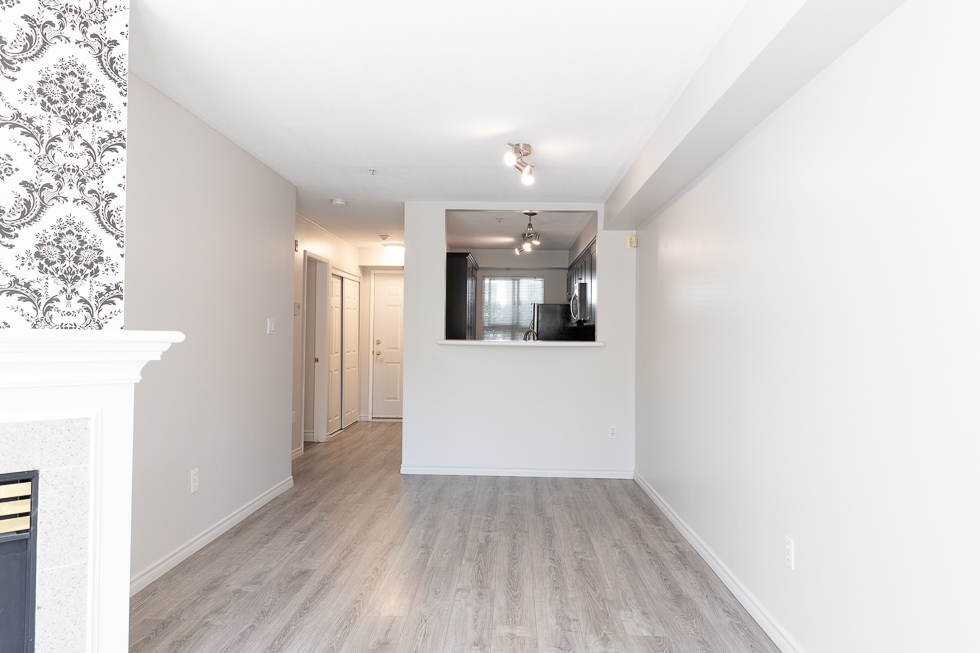 Features in this charming courtyard-entry unit include bright and open living spaces with laminate flooring, a private enclosed patio, gas fireplace, kitchen with ample storage, quartz countertops, and stainless steel appliances: fridge, stove, dishwasher, and microwave, a spacious primary bedroom with walk-in closet, and in-suite washer & dryer.